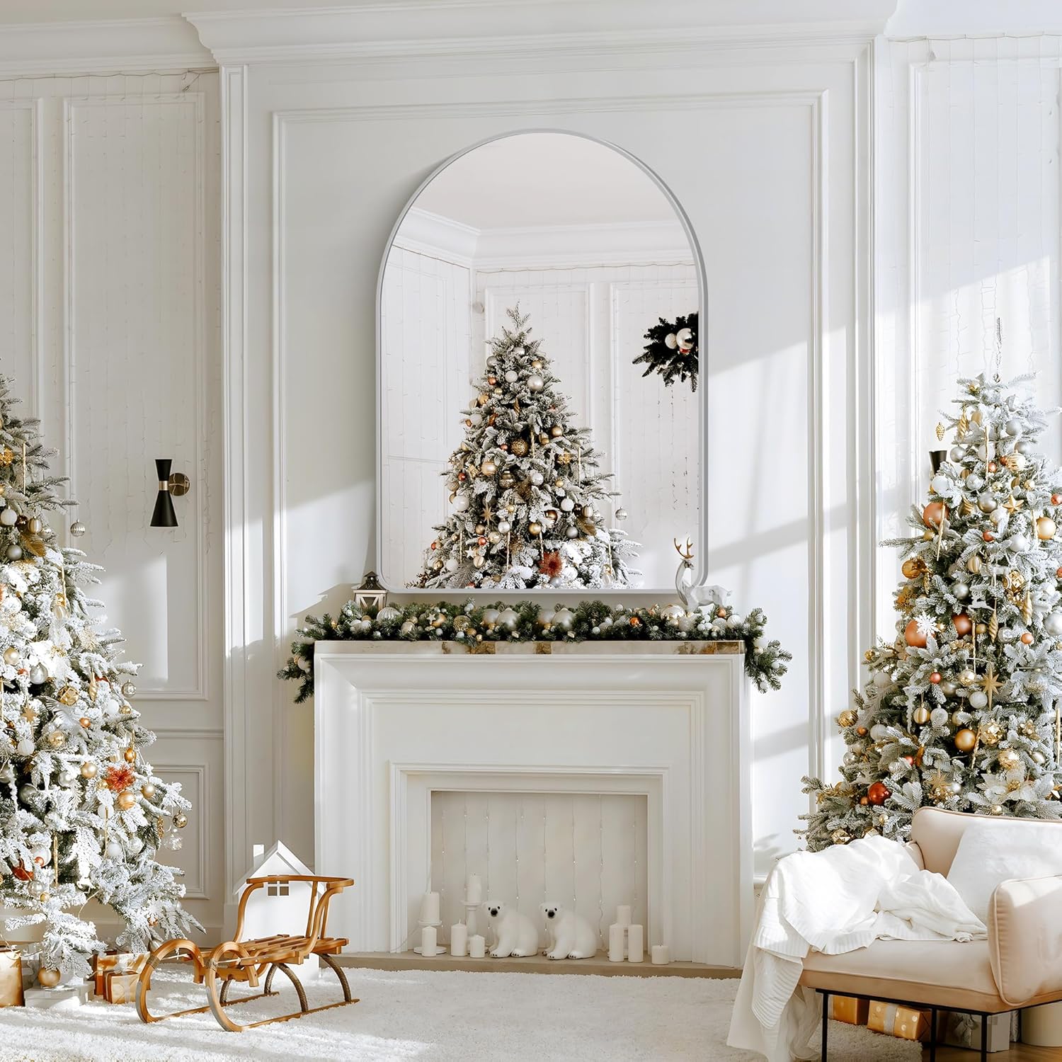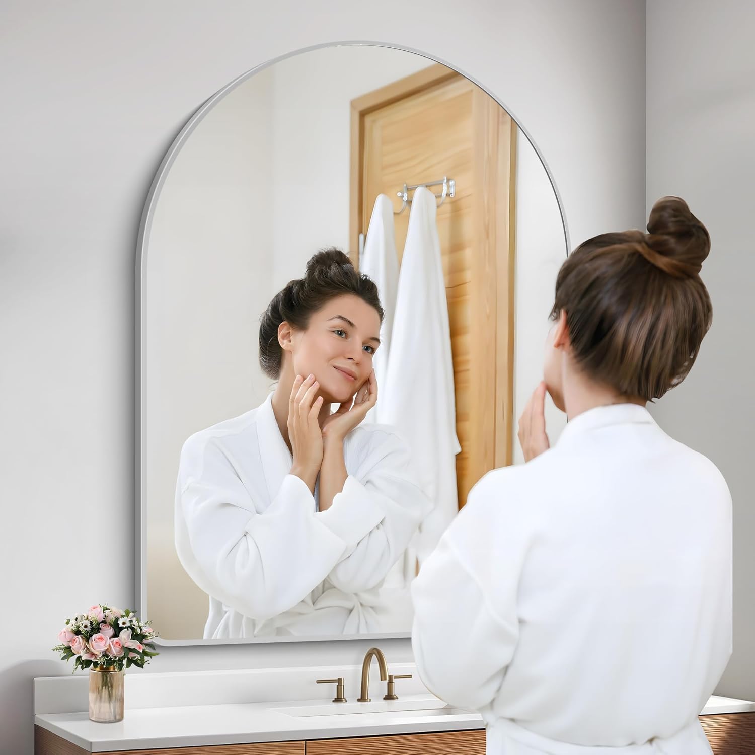 FORBATH Large Arched Wall Mirror 48x36 Inch, Silver Arch Bathroom Mirror with Aluminum Frame, Arched Mirror for Dresser, Fireplace,Entryway,Home Decor,Hanging or Leaning Against Wall