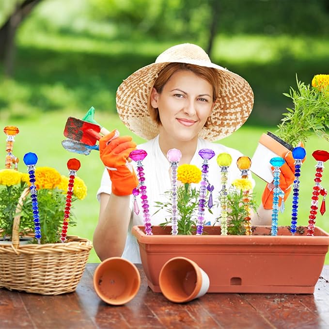- 【High Quality Materials】Stainless steel nuts and threaded rods make it sturdy and durable even in outdoor environments exposed to wind and rain. The exquisite diamond top refracts colorful light in the light,make it full of charm, Garden Stakes large hole beads are mainly made of resin, with complex production processes and excellent quality.These high-quality accessories make your creations simpler, more exquisite, and durable.