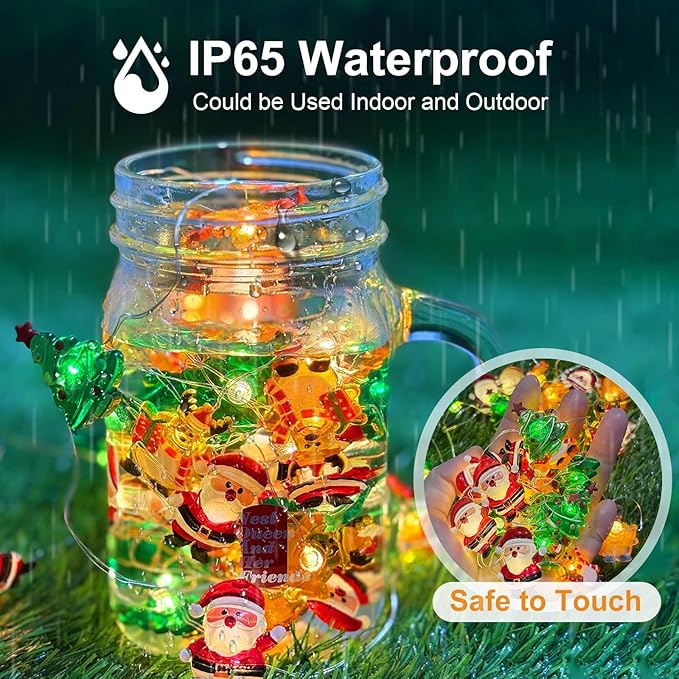 - Safe to Use: The Christmas string lights are safe low voltage and low power consumption,and designed with IP65 waterproof, the copper wire part can be put into the water to achieve a special atmosphere effect (except the battery box)