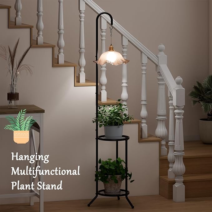 - 【Versatile Decoration】: The simple and elegant design of the iron flower stand can match various styles of home decoration and garden landscapes. The top rod with a S-hook for hanging flower pots, lamps, etc..