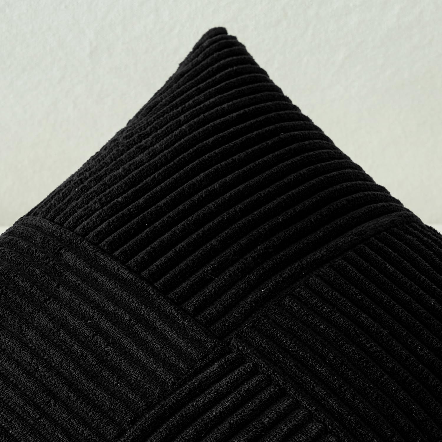 MIULEE Black Corduroy Pillow Covers Pack of 2 Boho Decorative Spliced Throw Pillow Covers Soft Solid Couch Pillowcases Cross Patchwork Textured Cushion Covers for Living Room Bed Sofa 14x22 inch
