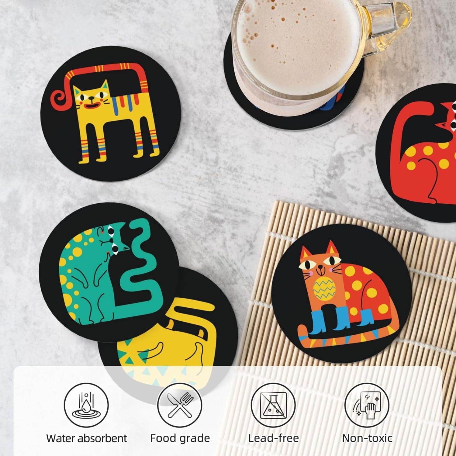 - Adorable Cat Designs: Feature a set of charming cat illustrations. Each coaster showcases a different, vividly colored cat, adding a fun and whimsical touch to your space.