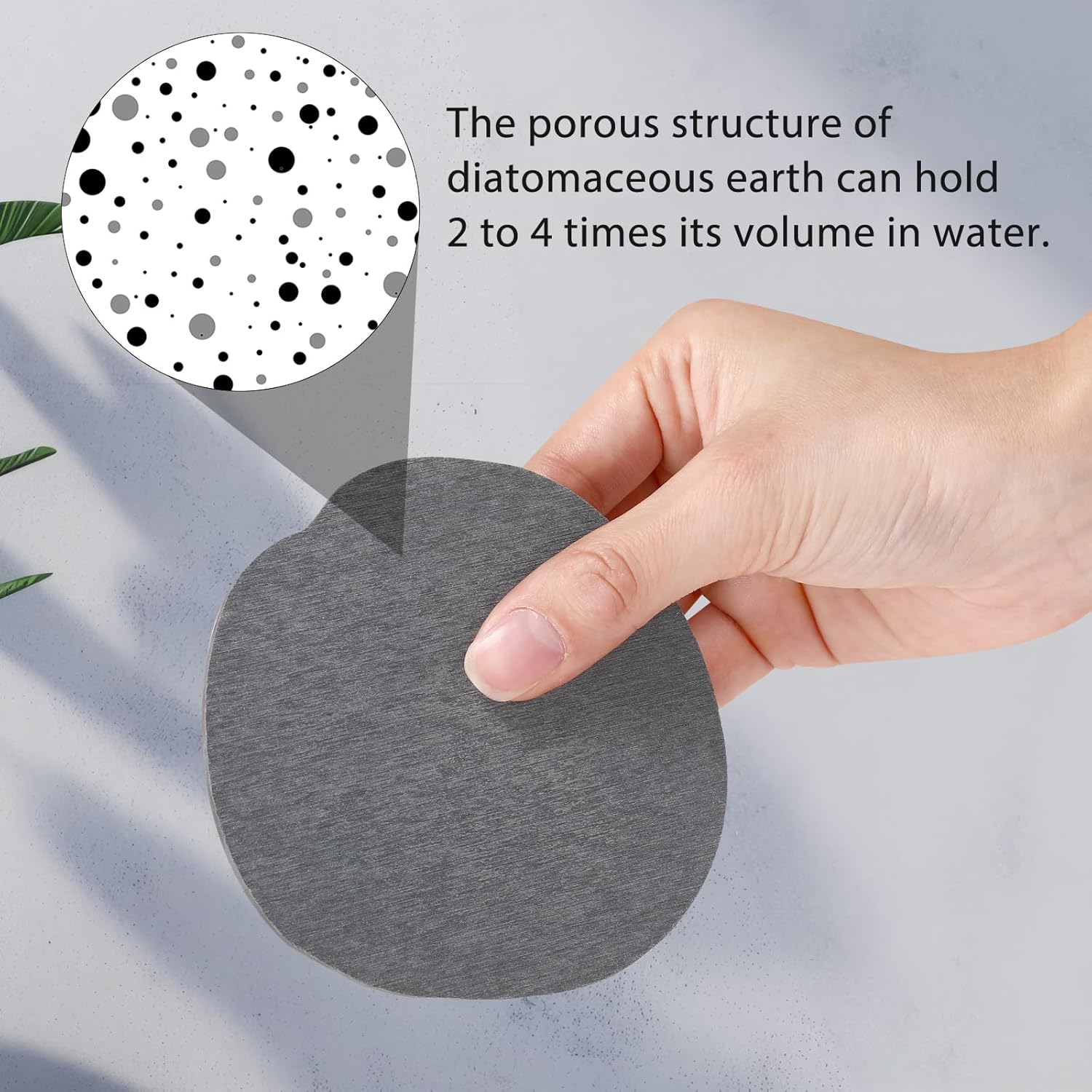 - Enhanced absorbency: Our Irregularity Diatomaceous Earth Coaster Set of 6 is specially designed with a porous structure that allows it to absorb drips from condensation. Made from diatomaceous earth, these coasters have the ability to hold 2 to 4 times its volume in water, ensuring your drinks stay dry and your surfaces protected.