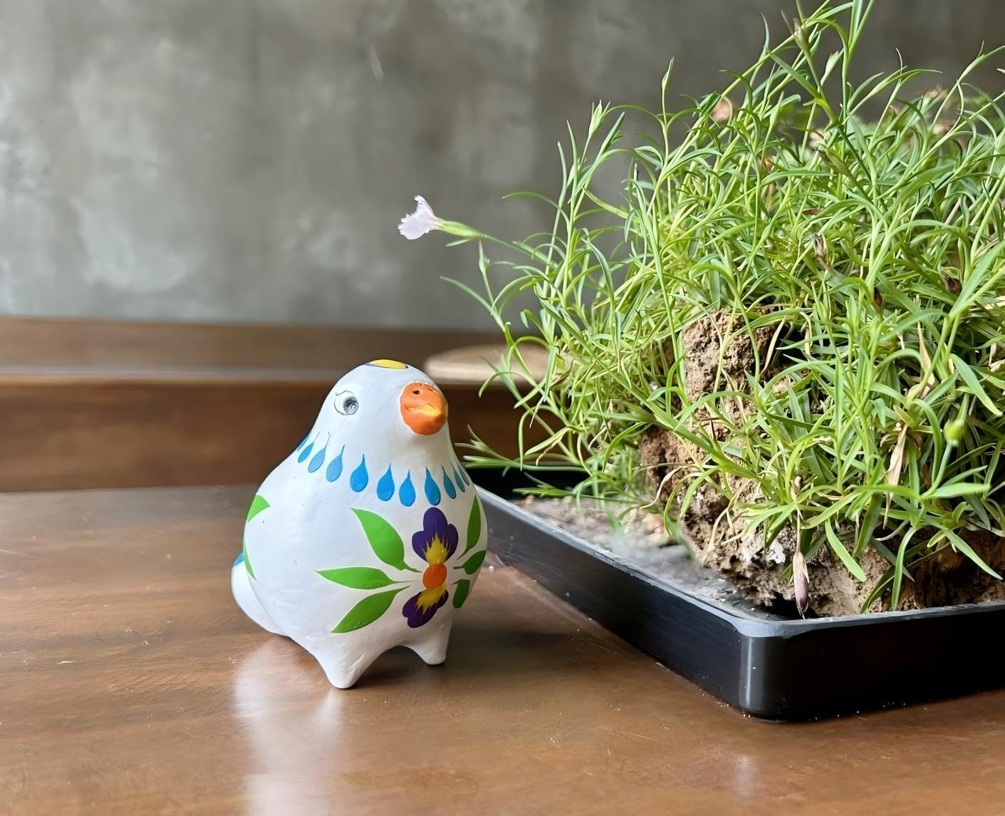 Decorative Clay Bird Figurines Hand-Painted Folk Art Design Collectible Smal Figurines Holiday Birthday Couples Friend Unique Gift Idea Decorative Home Art Table Bring Good Luck (White)