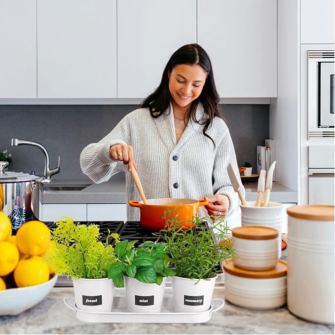 - Convenient Tray with Handles for Easy Mobility: The matching metal tray doubles as a stylish herb pots display stand and practical carrier. Its handles allow effortless movement from countertops to sunny windows or outdoor patios