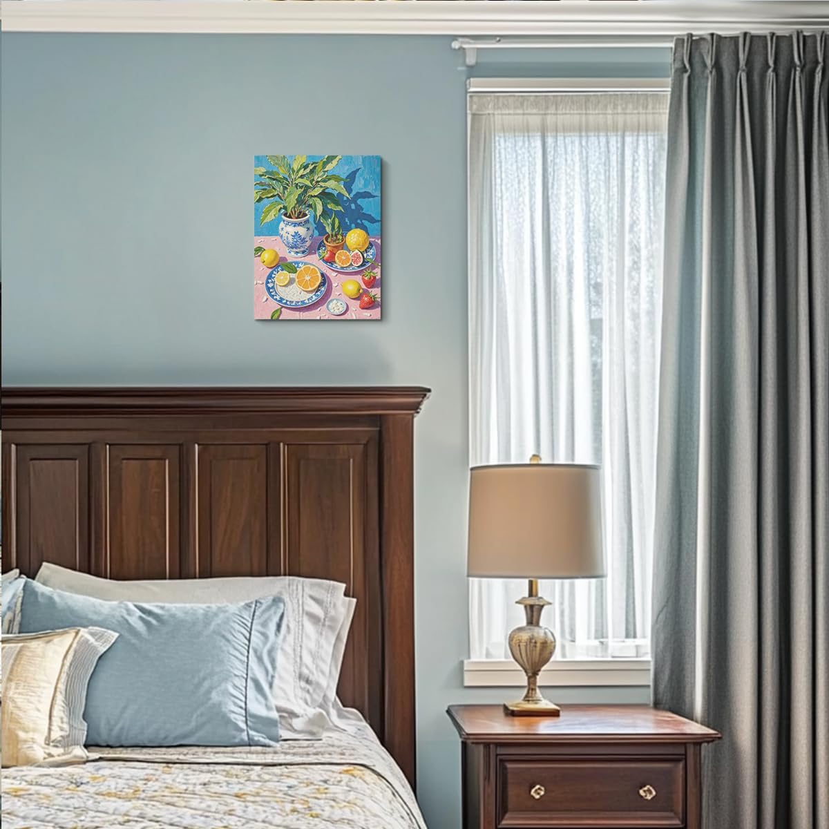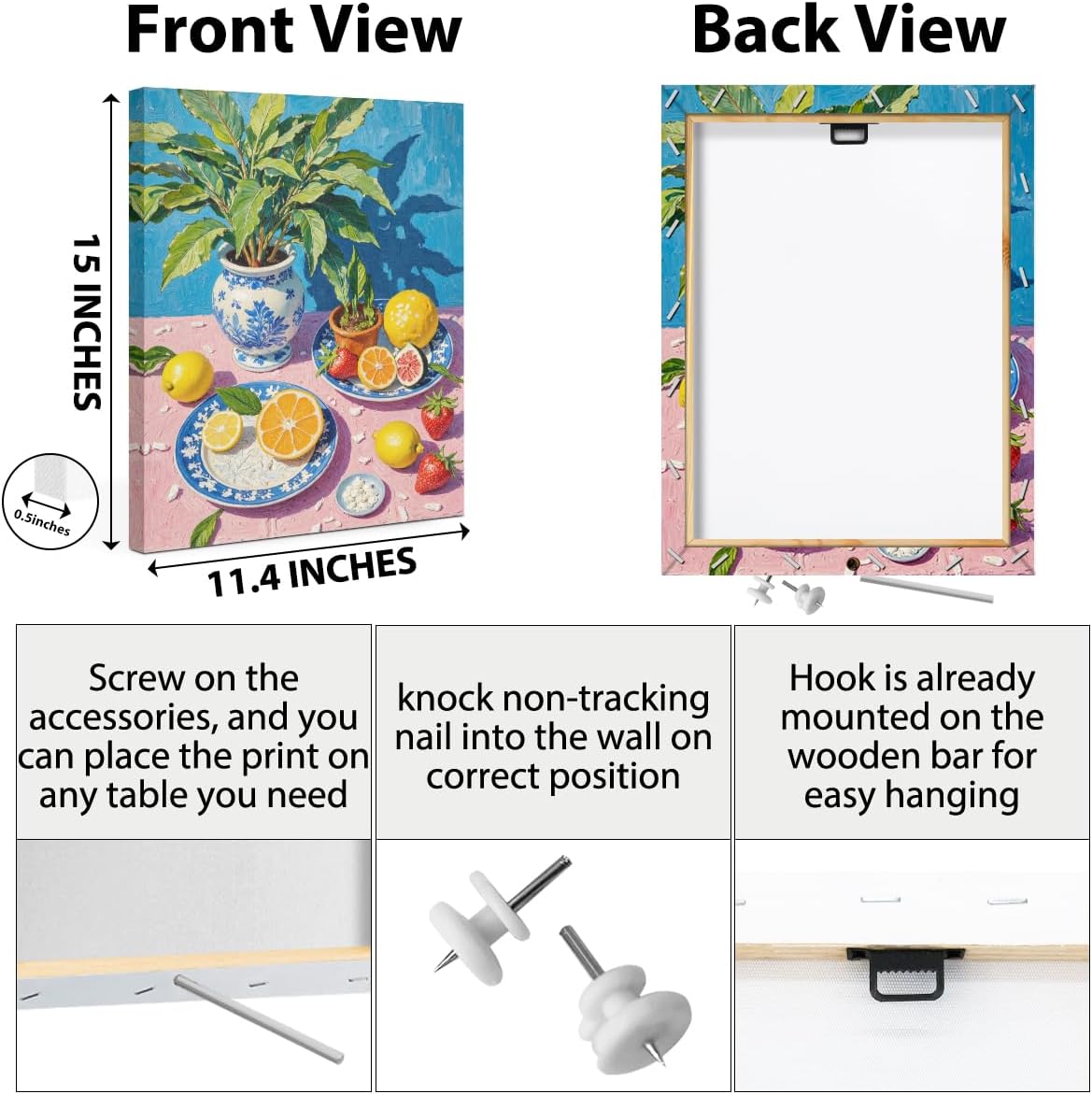 Italy Lemon Wall Art, Botanical Still Life Oil Painting Canvas Framed Prints Modern Decorations, Fruit Theme Poster for Living Room Dining room Entryway Farmhouse Bedroom