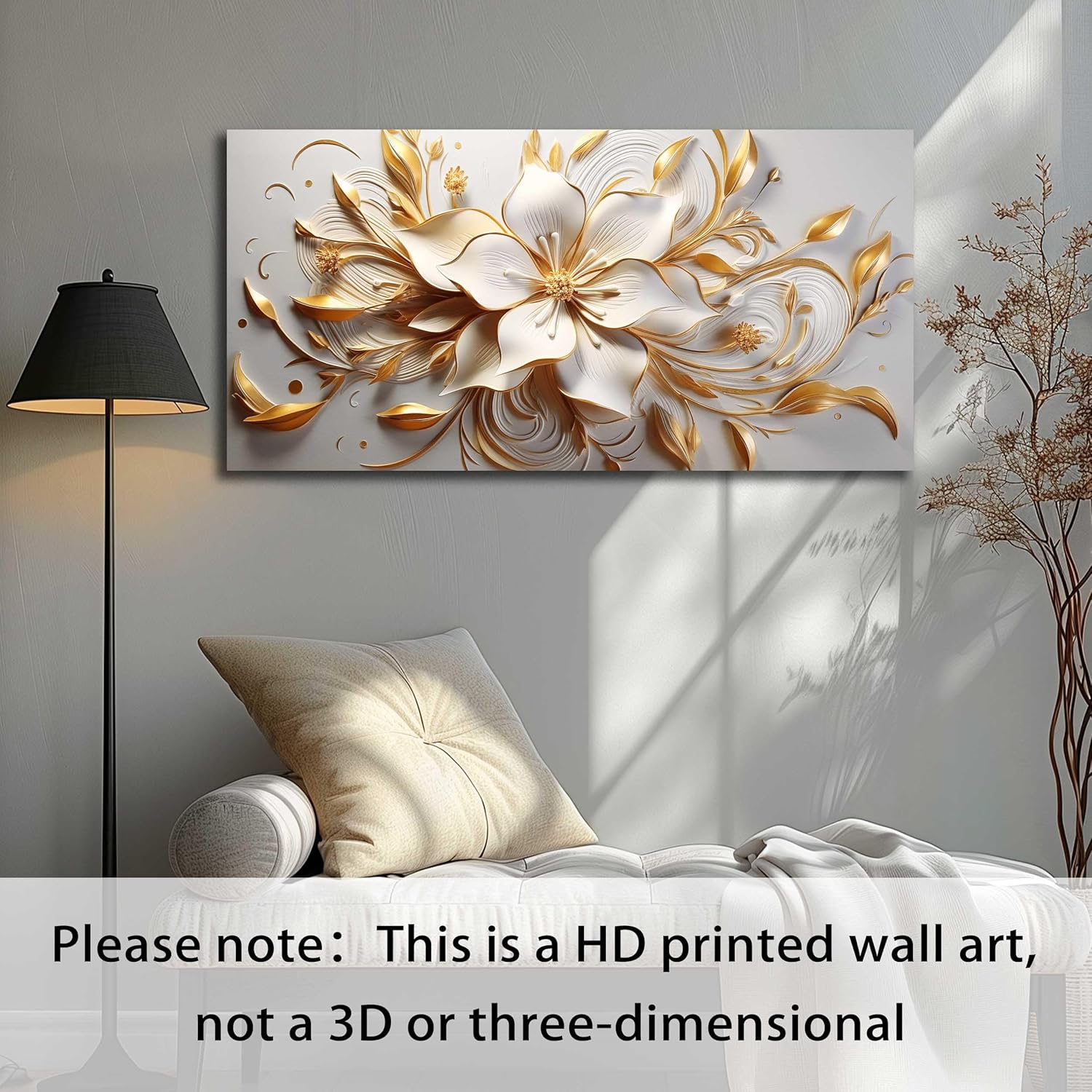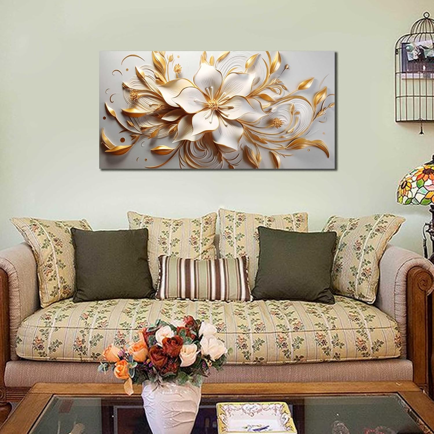 Flower Painting Wall Decor Living Room White and Gold Wall Art for Bedroom Modern Art Wall Decor Office Size 20" x 40"