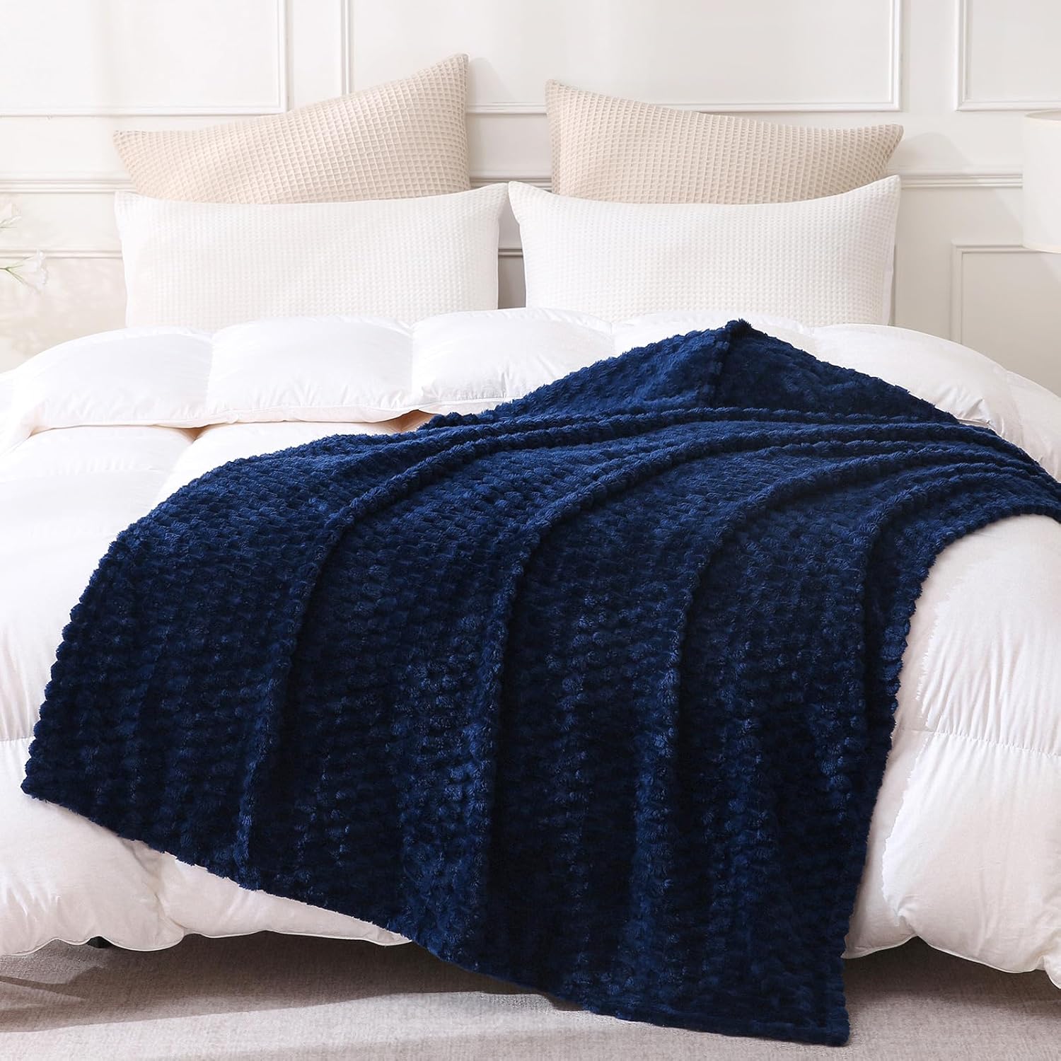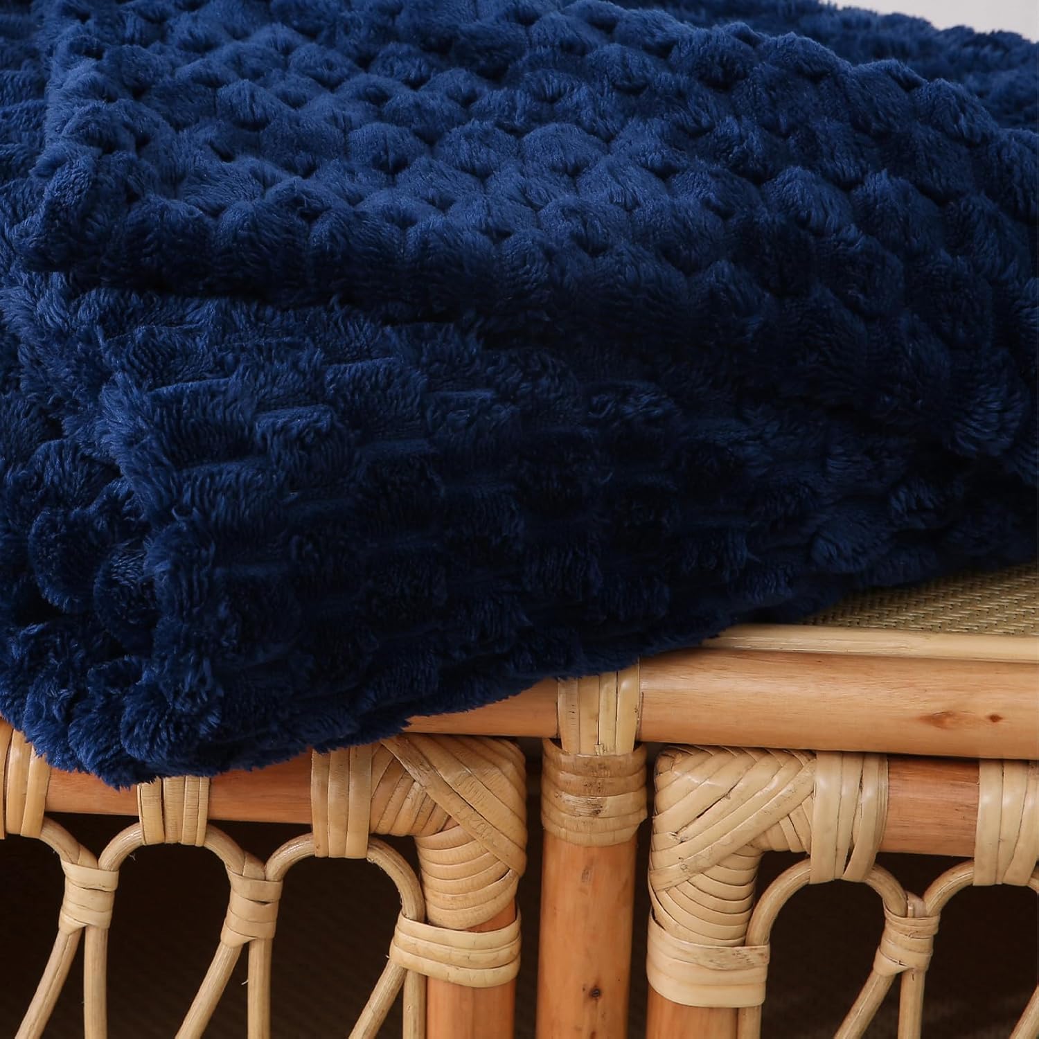 Blue Throw Blanket 50"×60" inches Gifts for Mom Fuzzy 3D Jacquard Decorative Flannel Fleece Super Soft Plush Cozy Blanket for Couch Sofa Chair Lightweight
