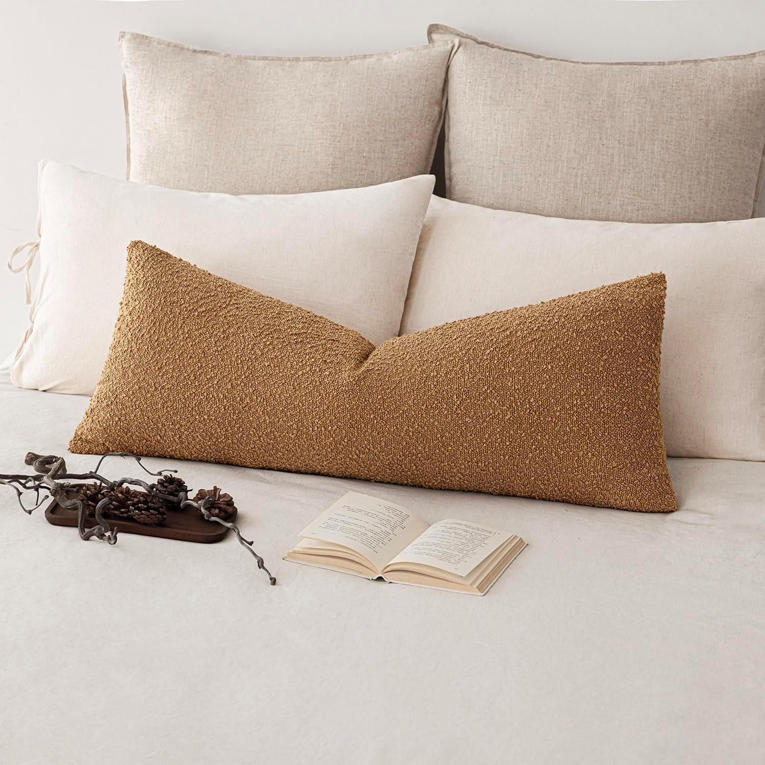 Foindtower Decorative Textured Boucle Throw Pillow Covers Accent Solid Pillow Cases Neutral Long Body Lumbar Couch Cushion Case for Chair Sofa Bedroom Living Room Home Decor 14x36 Inch,1PC,Tobacco