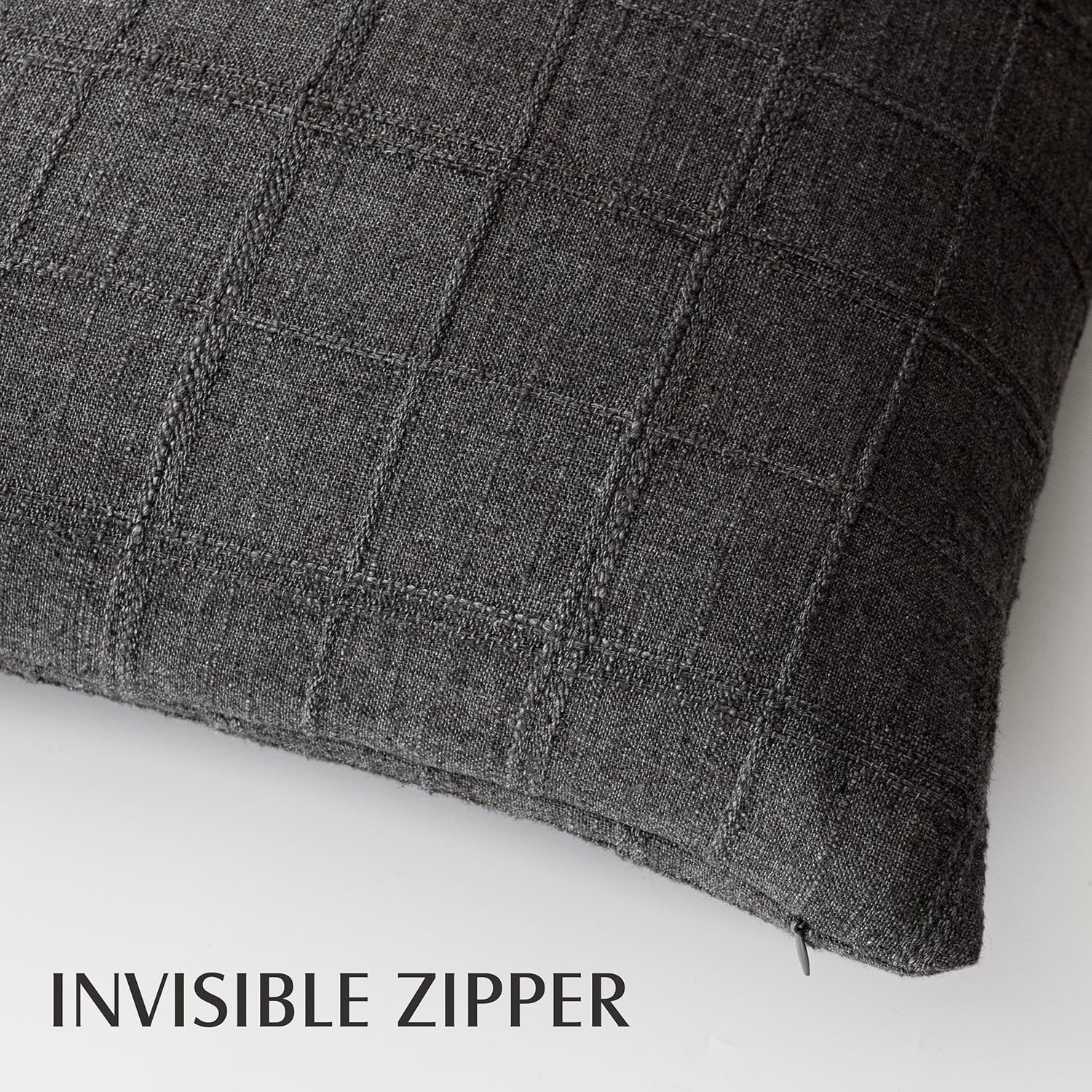 Foindtower Set of 2 Decorative Linen Check Throw Pillow Covers Neutral Long Body Lumbar Cushion Covers Farmhouse Vintage Home Decor for Sofa Chair Couch Bedroom Living Room,14×36 Inch,Charcoal