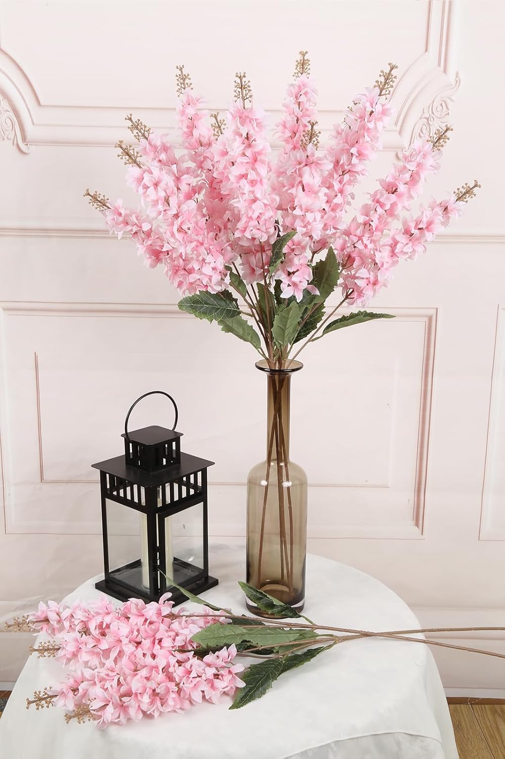 - Appropriate Size: The artificial flower packaging includes 5pcs silk delphinium flowers, with 3 delphinium flower in each bouquet.Its overall height is 34.2 inches.It is neither too small to be submerged in the light and shadow on the windowsill, nor too tall to appear jarring and flamboyant.The slender flower stems occupy most of the size, supporting the layers of petals, making your home lively and poetic.