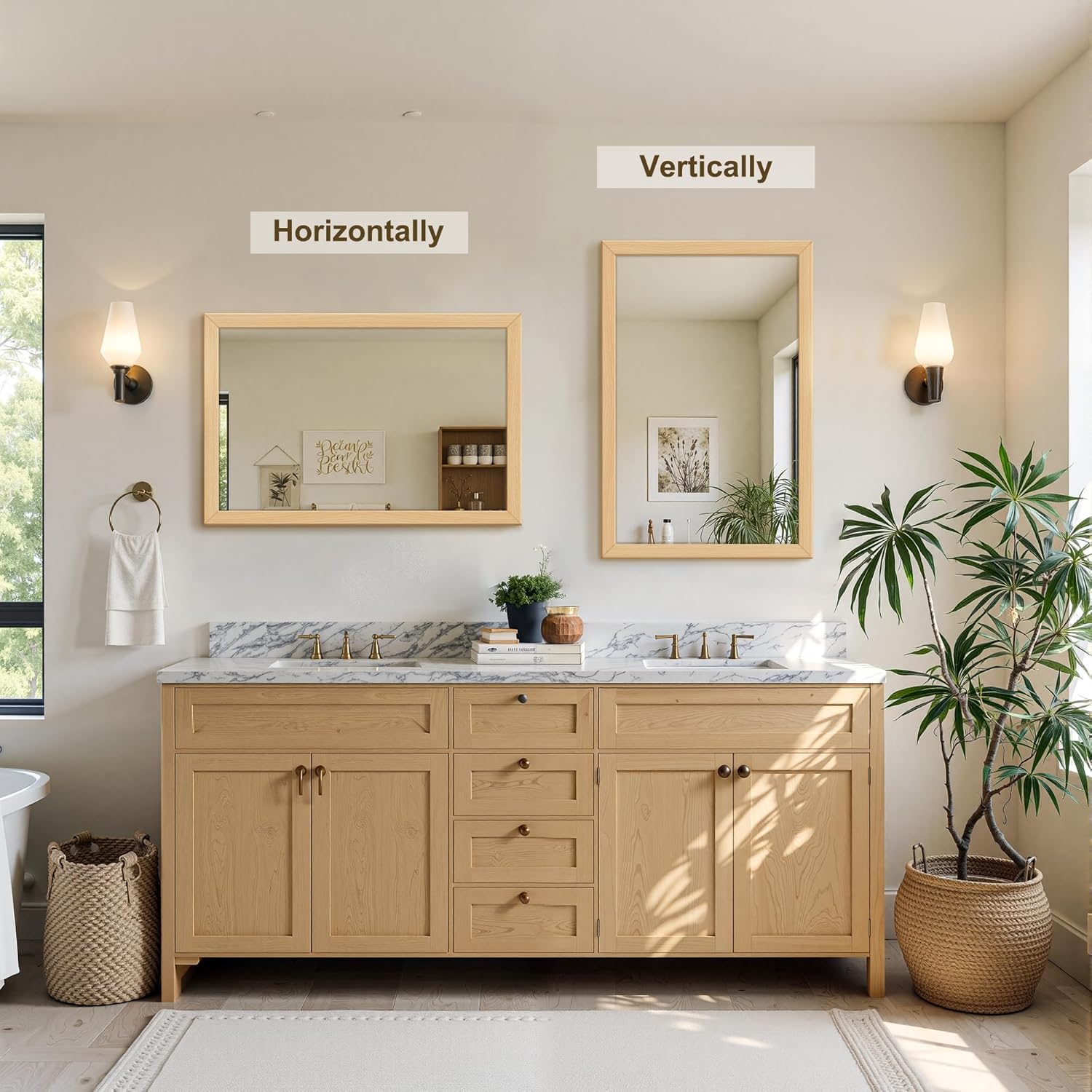 Delma Wall Mirror with Wooden Frame, 30x20 Farmhouse Wall Mounted Floor Mirror with Stand, Vertical Hanging, Leaning Standing for Bathroom,Bedroom, Living Room