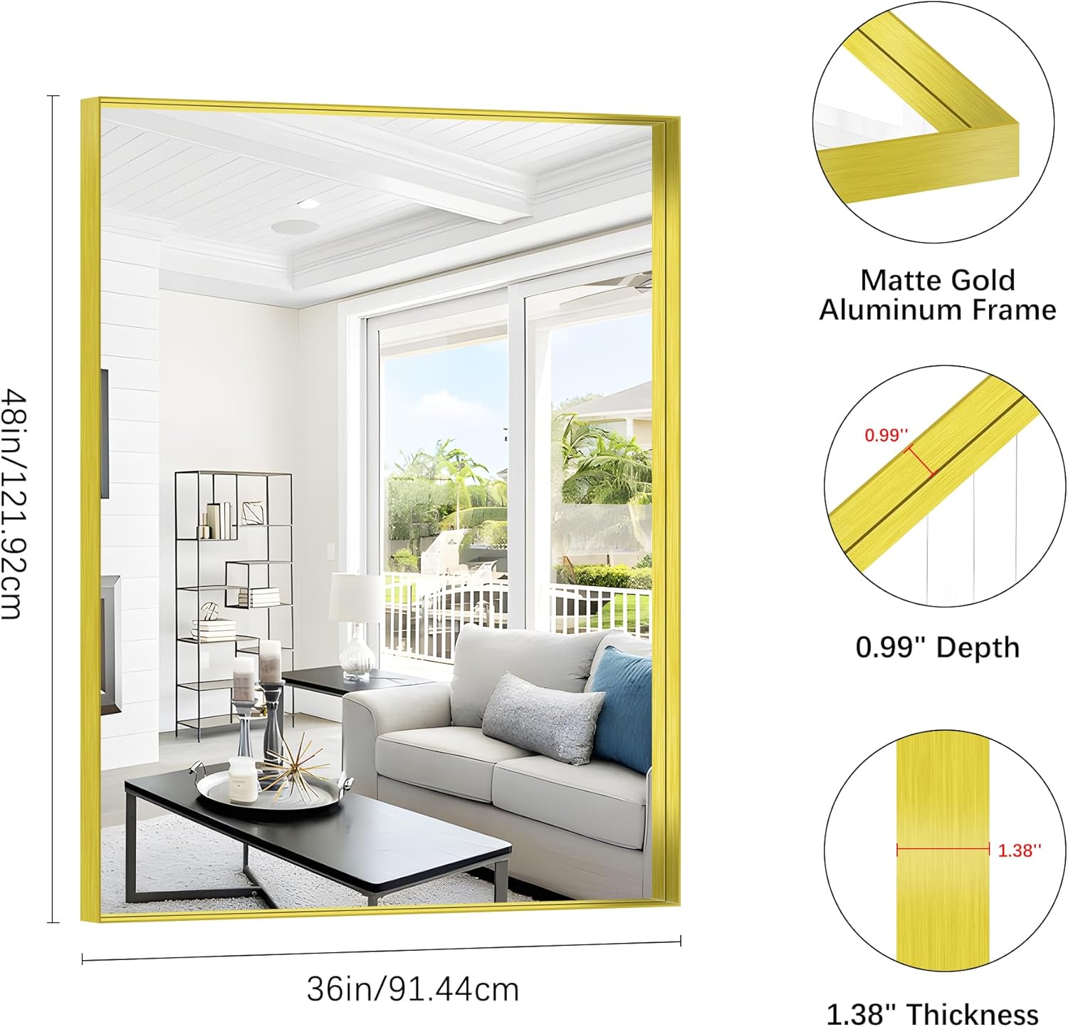 Gold Bathroom Mirror, 36x48 Inch Rectangular Framed Mirror, Large Wall Mounted Bathroom Vanity Mirror Over Sink for Bedroom,Restroom, Living Room, Hangs Vertically or Horizontally