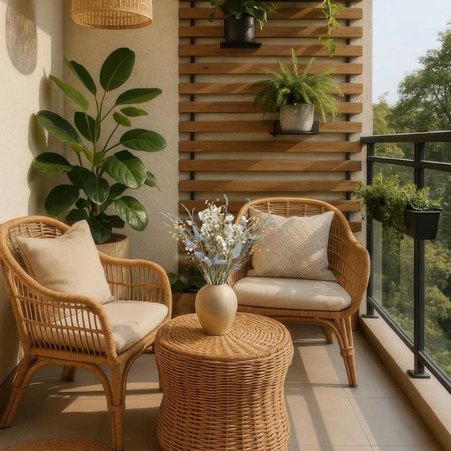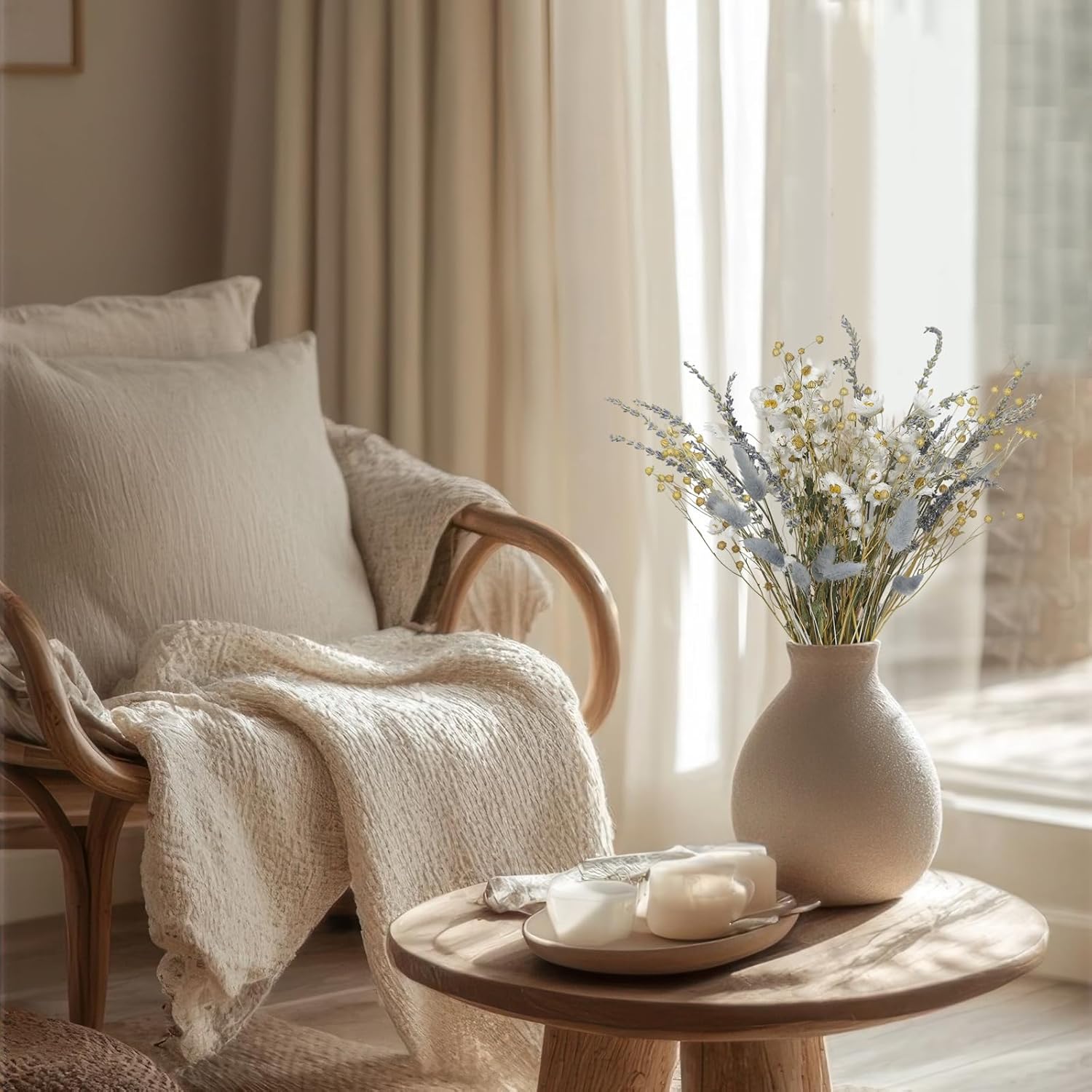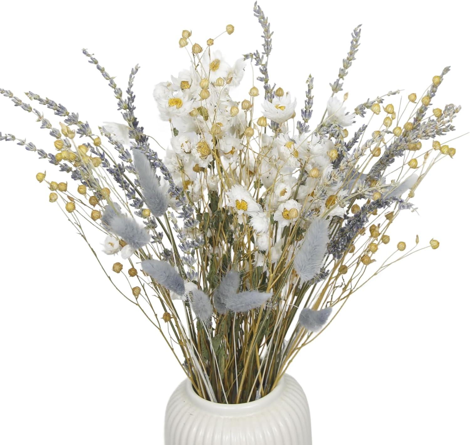 - 100% Natural: The dried flower bouquet is made of natural real flowers, maintaining its original appearance and timeless natural beauty. Contains a variety of elements, daisy, lavender, acacia beans, rabbit tail grass, etc. The natural flower decoration creates a strong rural atmosphere.