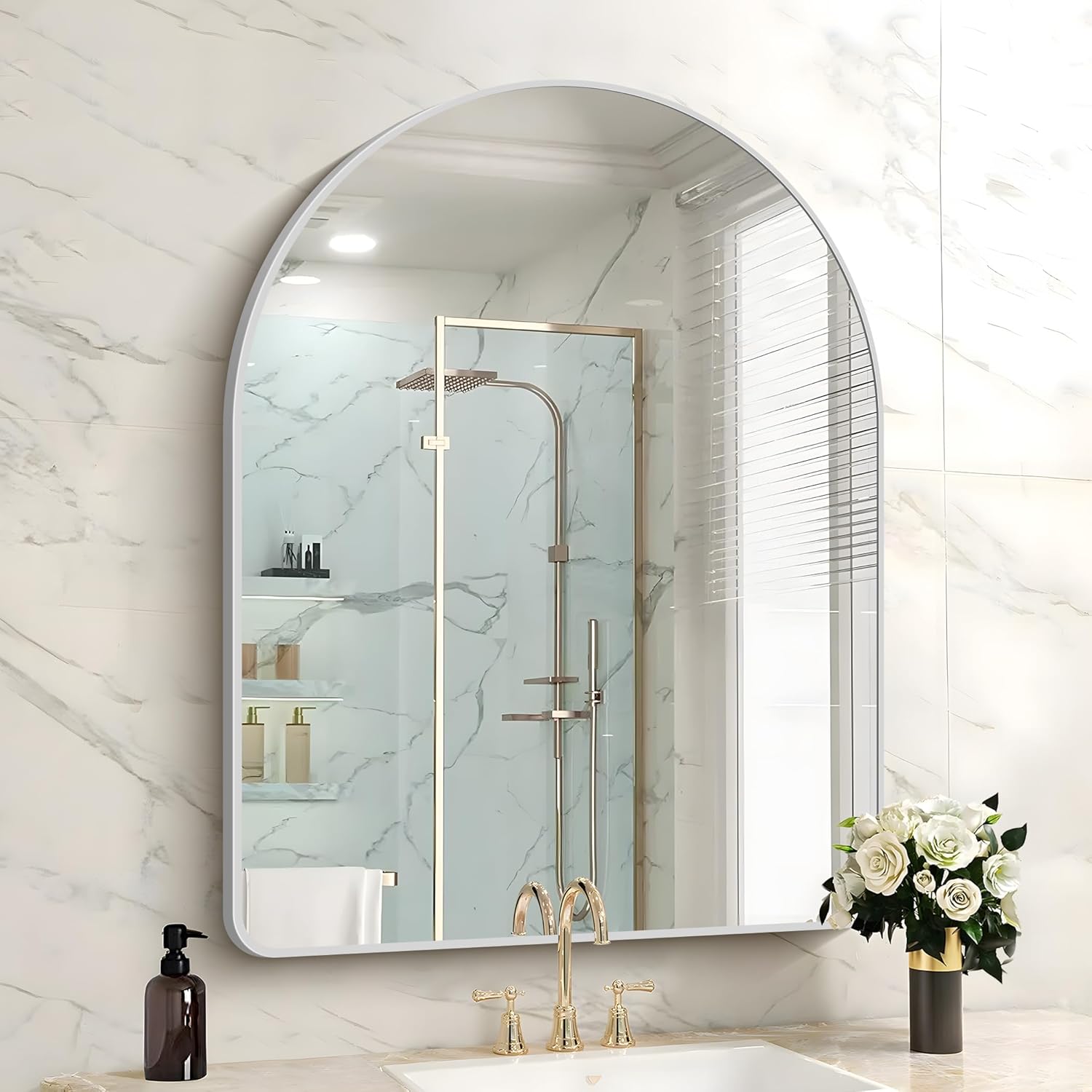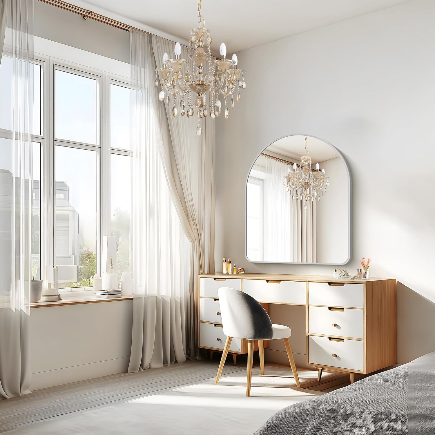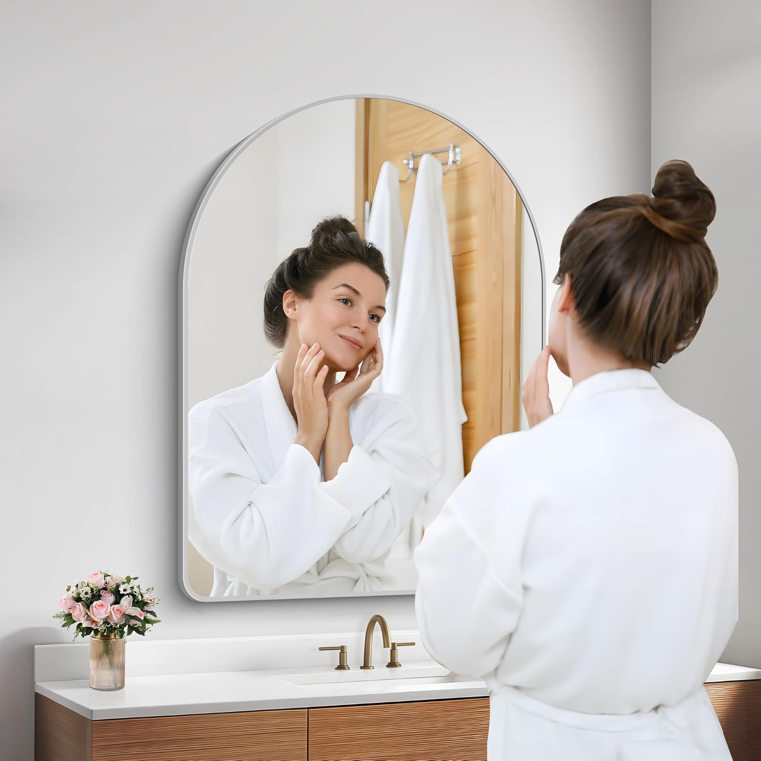 FORBATH Arched Bathroom Mirror 40x30 Inch, Silver Arch Wall Mirror with Aluminum Frame, Arched Mirror for Dresser, Fireplace,Entryway,Home Decor,Hanging or Leaning Against Wall