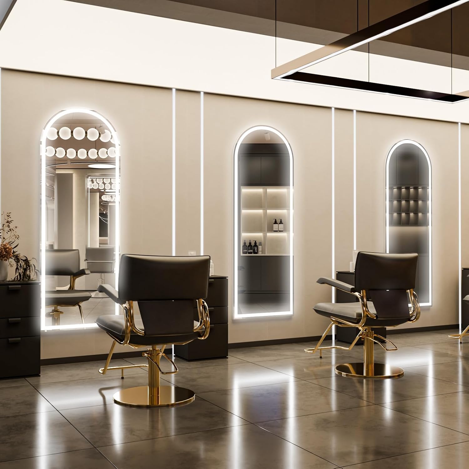 - 【Full Length Mirror Oversized View】Full length LED mirror provides focused, bright light convenient for your skincare and make-up, the large mirror surface allows for a complete display of dressing and fitness poses, and the arched design mirrors make your space more aesthetically pleasing