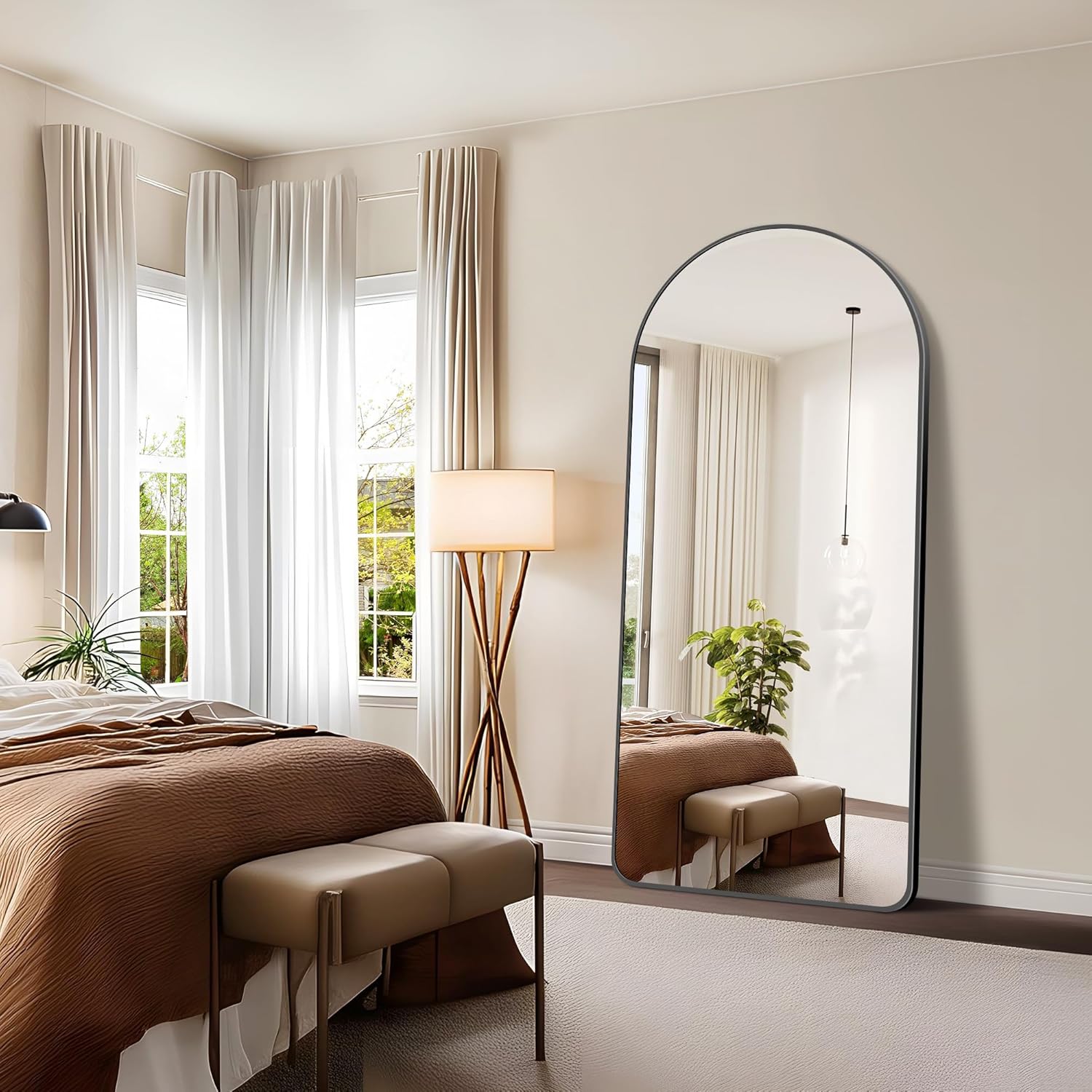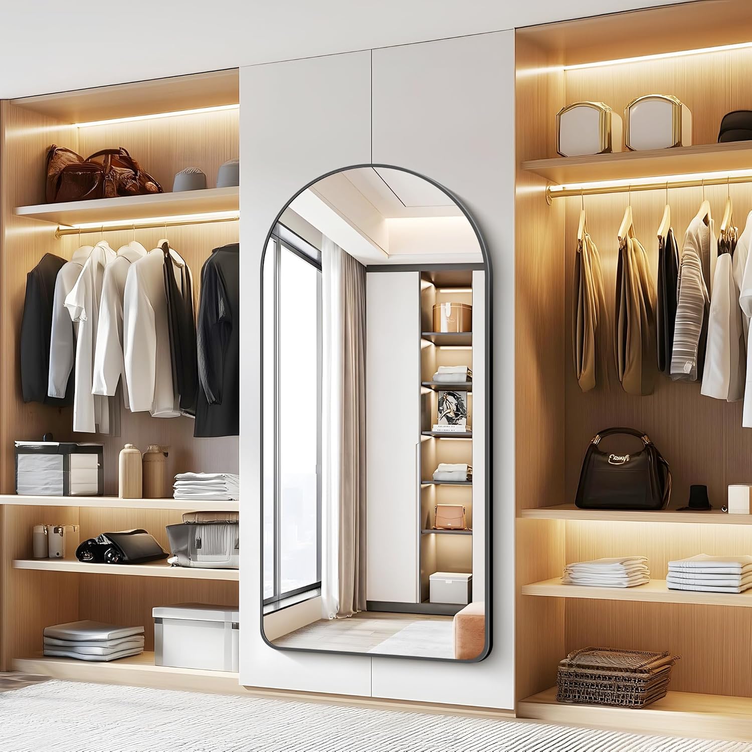 - Full-Length Arched Elegance: 60" x 30" floor-standing or wall-mounted arch mirror delivers full-body viewing with head-to-toe clarity. The curved top adds artistic flair to dressing rooms, bedroom suites, and entryways – turning functional check into a style statement. Matte black frame complements wardrobes and modern interiors.
