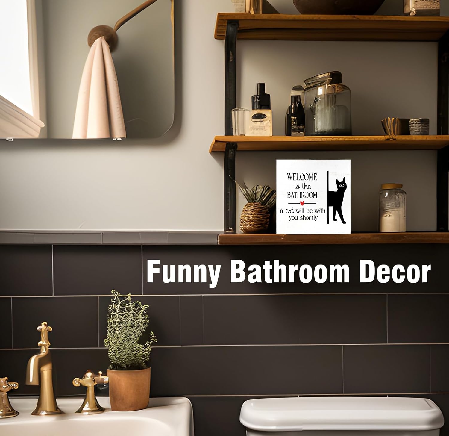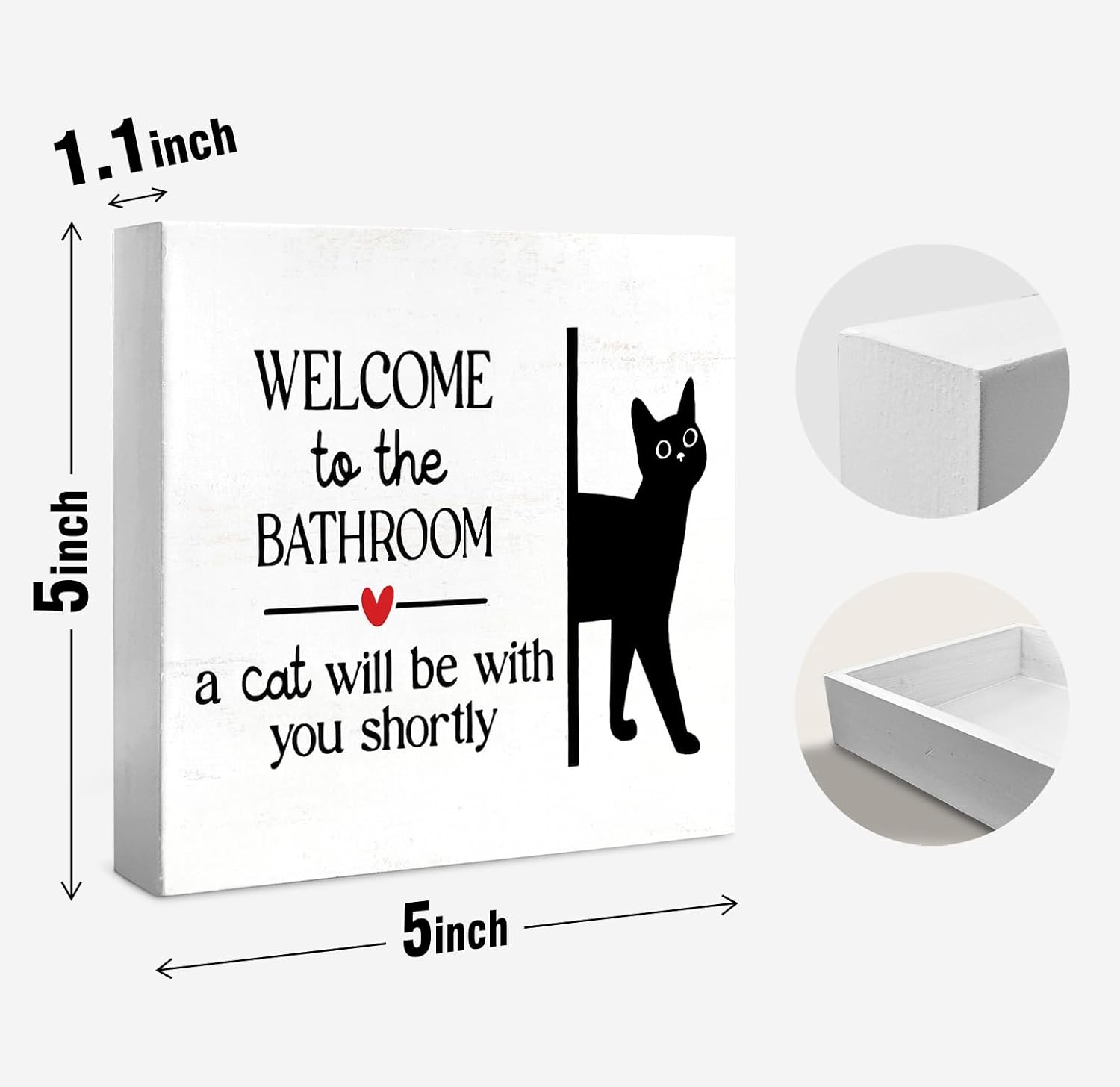 Funny Bathroom Black Cat Wall Decor Desk Wooden Box Sign, Cat Decor for Home Welcome to the Bathroom Sign, Gifts for Women Cats Lovers, Welcome To The Bathroom A Cat Will Be With, 5x5 inch