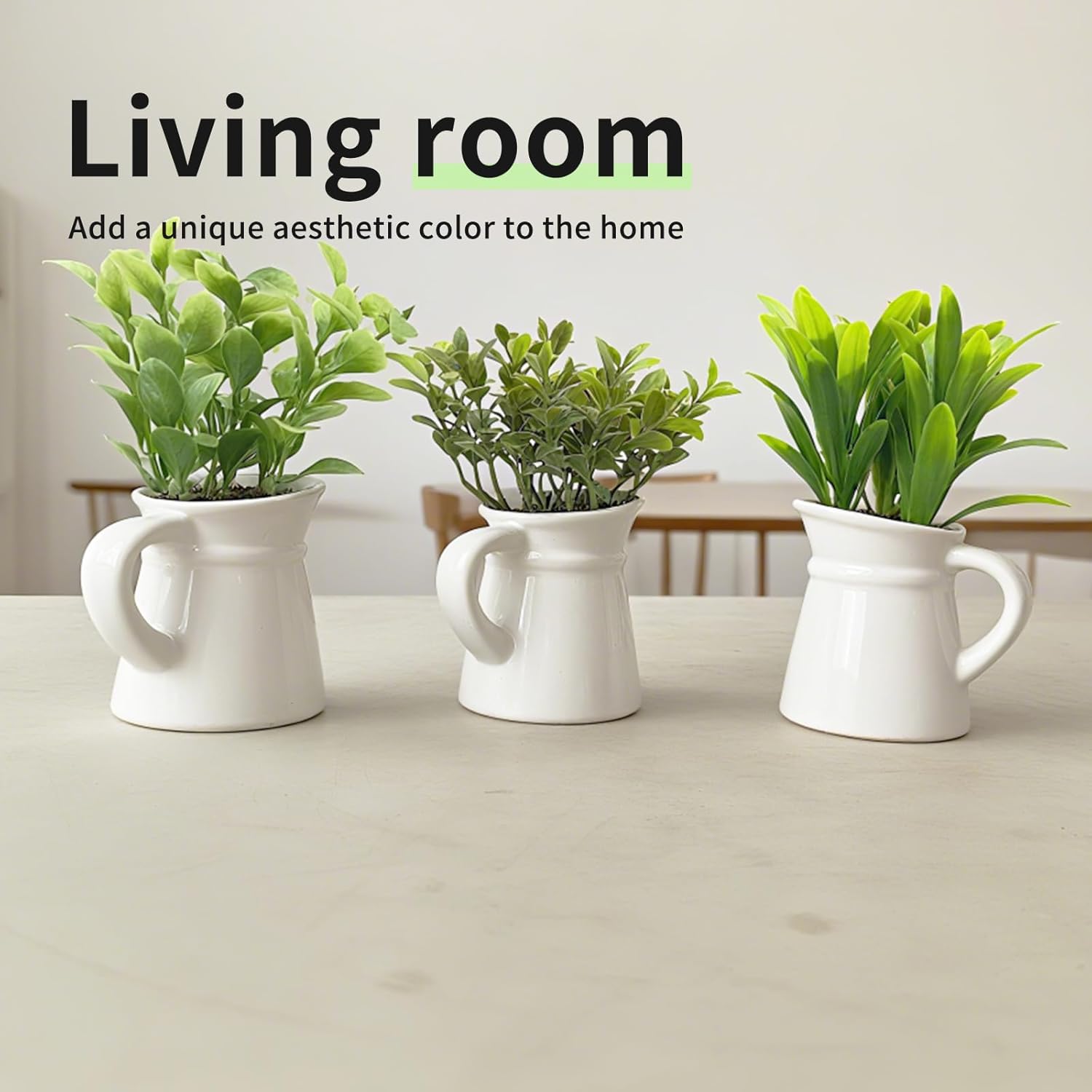 - Package Contents:You will get 3 pack of unique shape fake plants potted by white ceramic. After receiving it, you can comb the leaves a little to make it look more radiant.