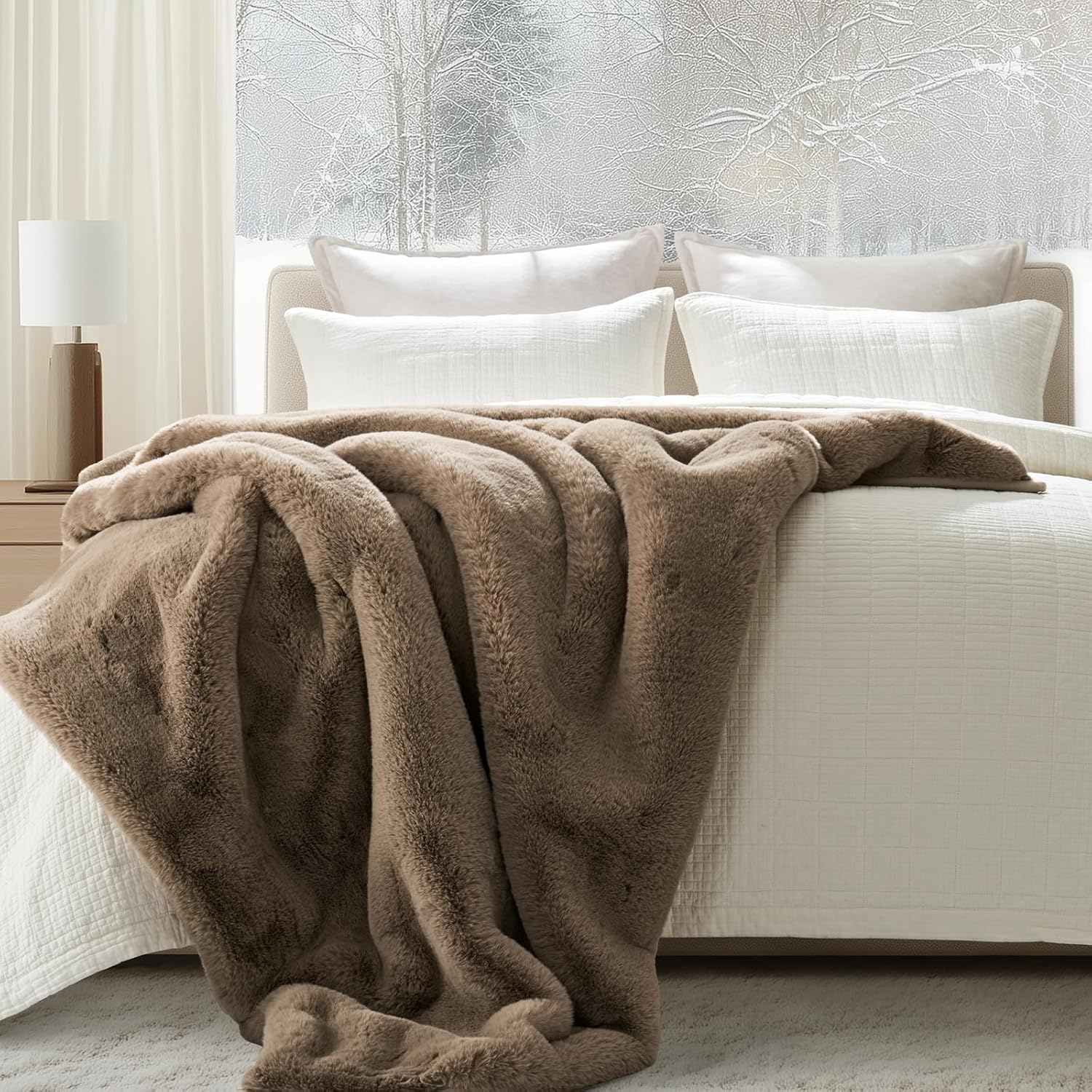 - EXTRA PLUSH & COZY GOODNESS - Indulge in the cloud-like comfort of our Ultimate Faux Fur Blanket, wrapping you in serene softness for the ultimate snuggle experience. Crafted with luxurious 1000GSM ultra-plush faux rabbit fur on the topside and backed with 220GSM buttery velvet fabric. The remarkable thickness and weight ensure a secure feel, making you enjoy a deep sleep and keeping you warm on the coldest days.