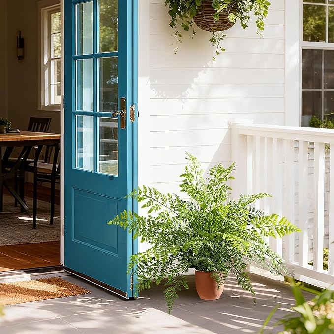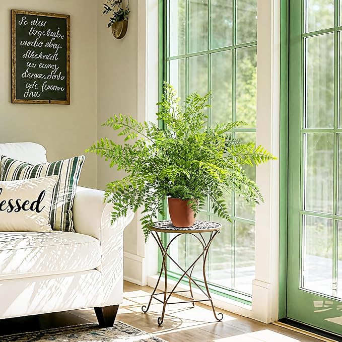 - QUATITY AND PACKAGE: 25.2” tall wide approx after stretching the faux fern stems. The fern plants leaves may be squeezed due to transportation, after a little adjustment can be restored. Artificial plants come in a variety of specifications for you to choose from, The fern quantity allows for endless creative possibilities.
