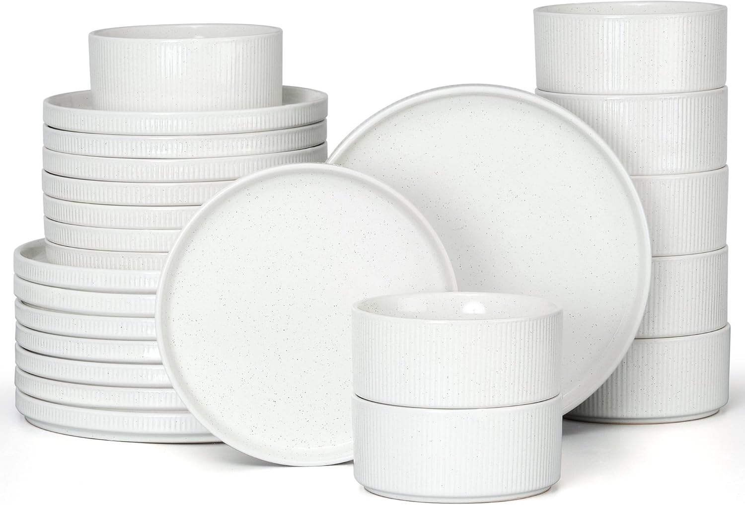 - 24-PIECE DINNERWARE SETS: Includes 10.2 in dinner plates, 8.3 in dessert plates and 5.6 in (25.5oz) cereal bowls, Elegant dish set is suitable for households and special occasions and is ideal for casual meals, parties or formal dining, Providing versatility for daily meals, Ideal for salads, pasta, soups, desserts, and more