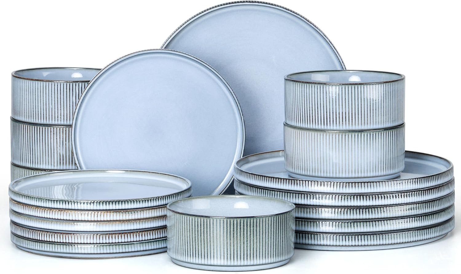 - ELEGANT REACTIVE GLAZE DESIGN: Smooth glaze enhances surface hardness, Making it chip-resistant, scratch-resistant, fade-proof and durable, Simple and stylish glaze design brings a touch of elegance to your dining table, Reactive glaze makes each bowl and plate look unique yet attractive, Providing you with a different dining experience every time, Suitable for complementing any dining table setting