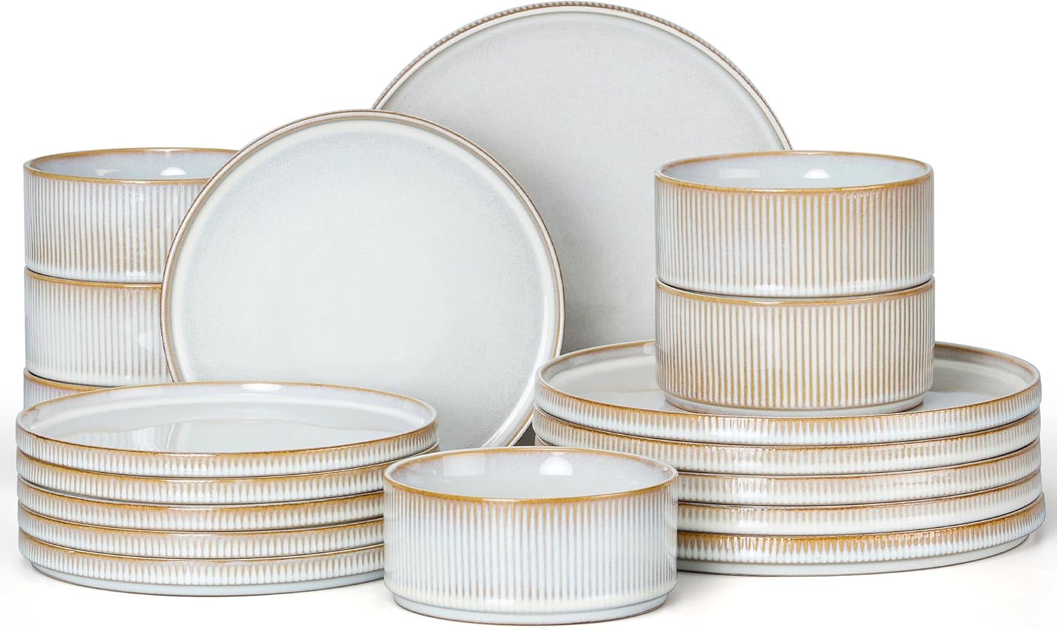 - 18-PIECE DINNERWARE SETS: Includes 10.2 in dinner plates, 8.3 in dessert plates and 5.6 in (25.5oz) cereal bowls, Elegant dish set is suitable for households and special occasions and is ideal for casual meals, parties or formal dining, Providing versatility for daily meals, Ideal for salads, pasta, soups, desserts, and more