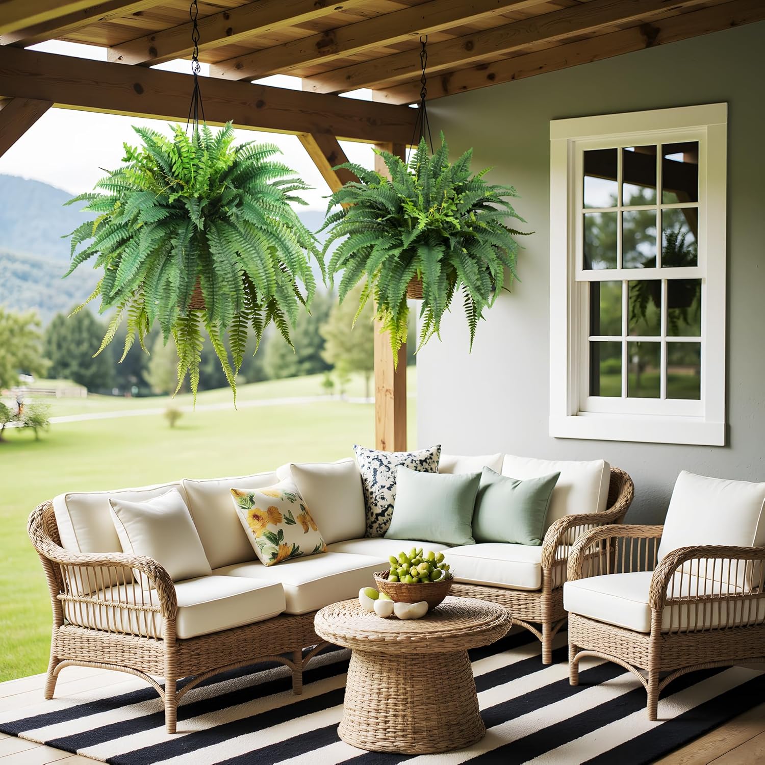 - Versatile Design: Whether you want to spruce up your outdoor hanging basket with faux ferns outdoor hanging basket or create a stunning centerpiece with large artificial ferns in your planters, these artificial ferns for outdoors are incredibly versatile. They can be used in a variety of outdoor settings to enhance the aesthetic appeal.