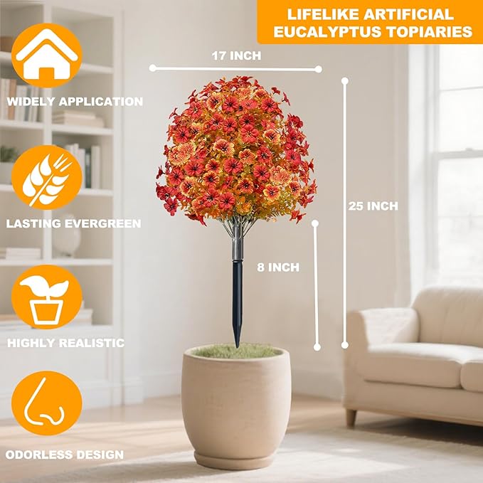 - Recommended Uses For Product : Artificial Fall Tree for Planter Indoor or Outdoor, Artificial Flowers in Soil with Ground Spike, Topiary Ball Tree for Autumn Outside Artificial Fall Tree for Planter Indoor or Outdoor, Artificial Flowers in Soil with Ground Spike, Topiary Ball Tree for Autumn Outside