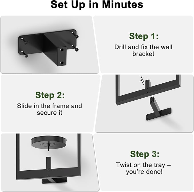- Larger Capacity, Wider Compatibility: Designed larger for more flexibility, featuring a generous 6.7" tray ideal for 3"–6" pots. Display bigger plants like ivy, pothos, succulents, or lavender comfortably, enjoying a fuller, greener vertical display