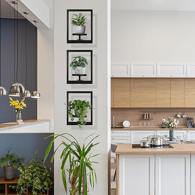 Heavy-Duty Wall Planters for Indoor Plants, Modern Metal Hanging Plant Holders, Picture Frame Wall Plant Shelves for Living Room, Balcony, Patio, Window Garden Décor, 2-Pack
