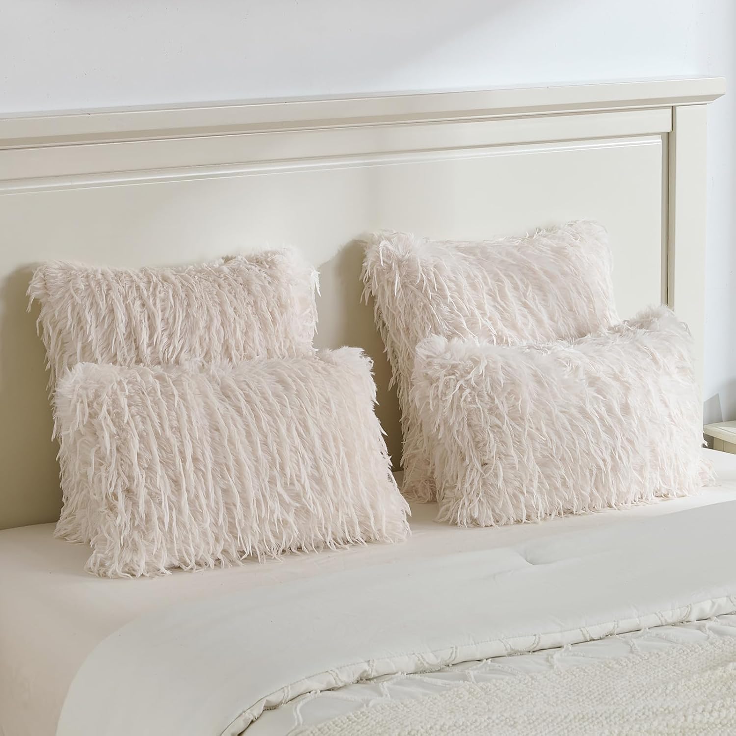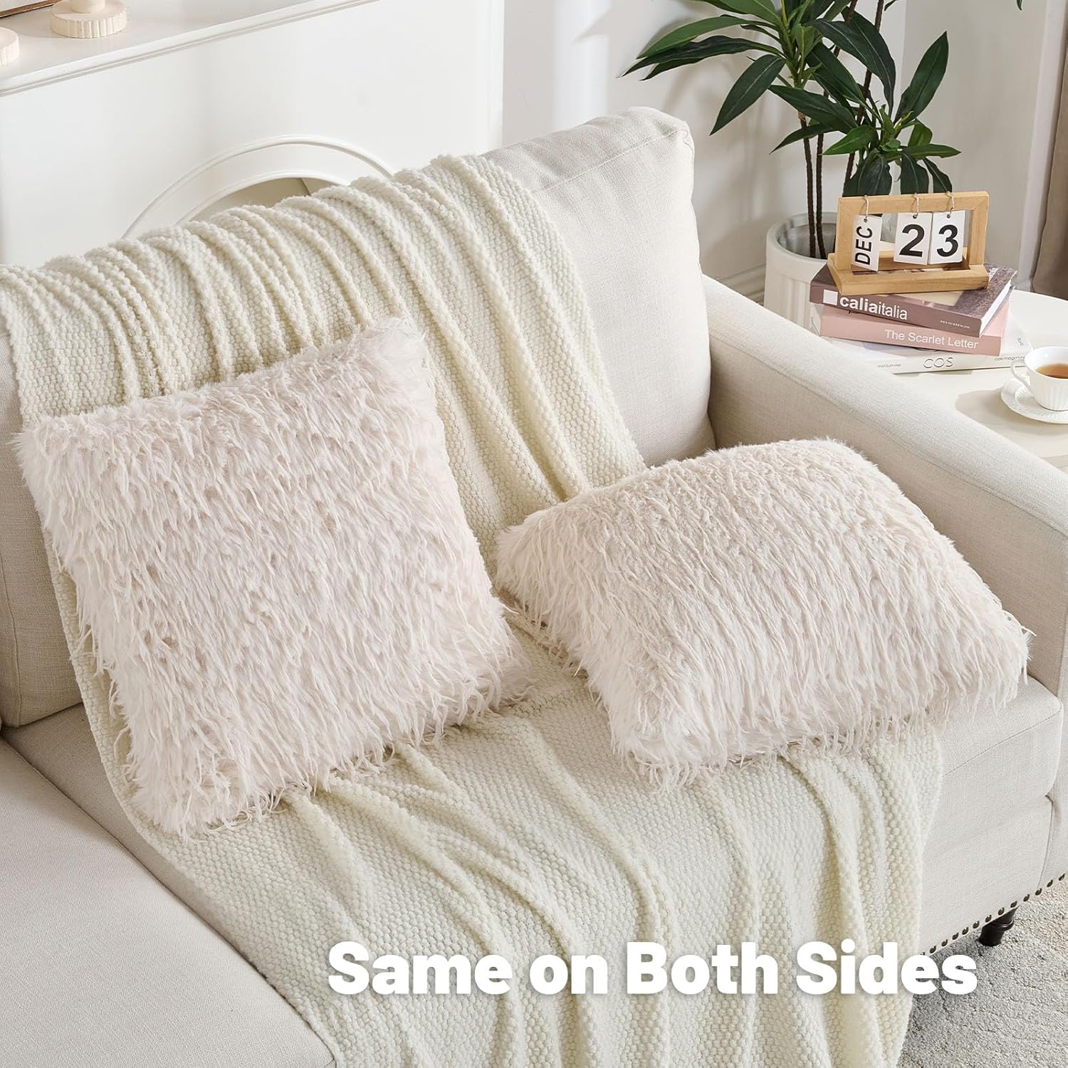 FUTEI Cream White Decorative Throw Pillow Covers 26x26 Inch Set of 2,Soft Fluffy Faux Feather Texture Euro Pillow Shams,Modern Home Luxury Decor for Couch Bed Living Room