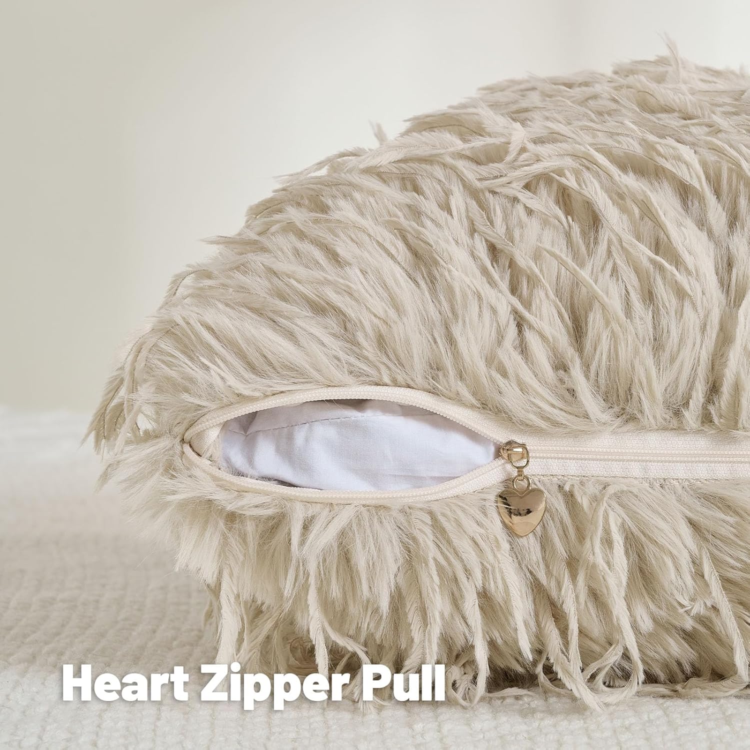 FUTEI Beige Decorative Throw Pillow Covers 16x16 Inch Set of 2,Soft Fluffy Faux Feather Texture Cushion Cases,Modern Home Luxury Decor for Couch Bed Living Room
