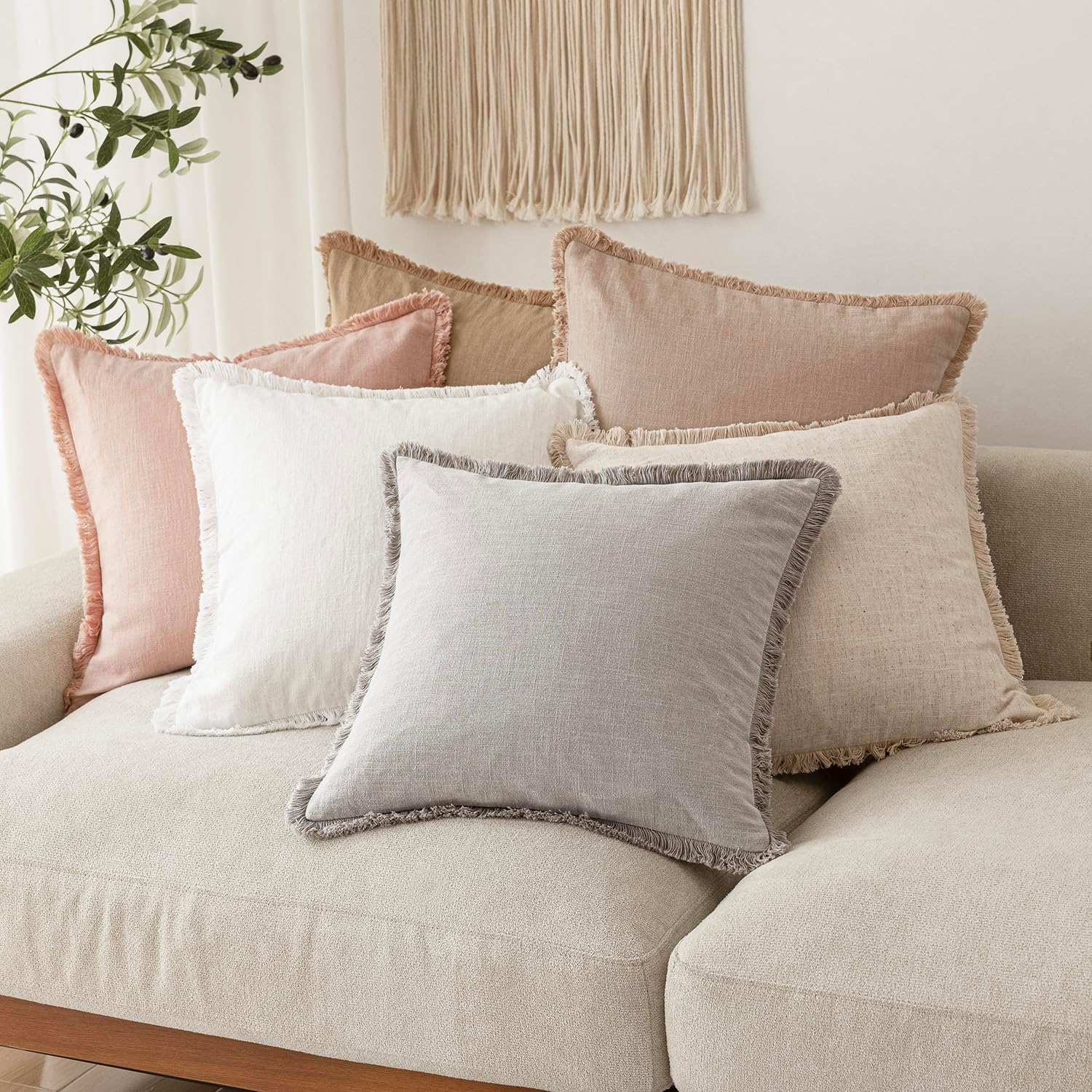 - 【Indoor & Outdoor Use】Available in a range of earthy, goes-with-anything hues for a look that works year-round. Fringed pillow covers is suitable for living room, bedroom, office, sunroom, den, kitchen benches, patio sets, nursery, car seat, floor, and more. You can put them on the sofa, bed, couch, outdoor, etc.
