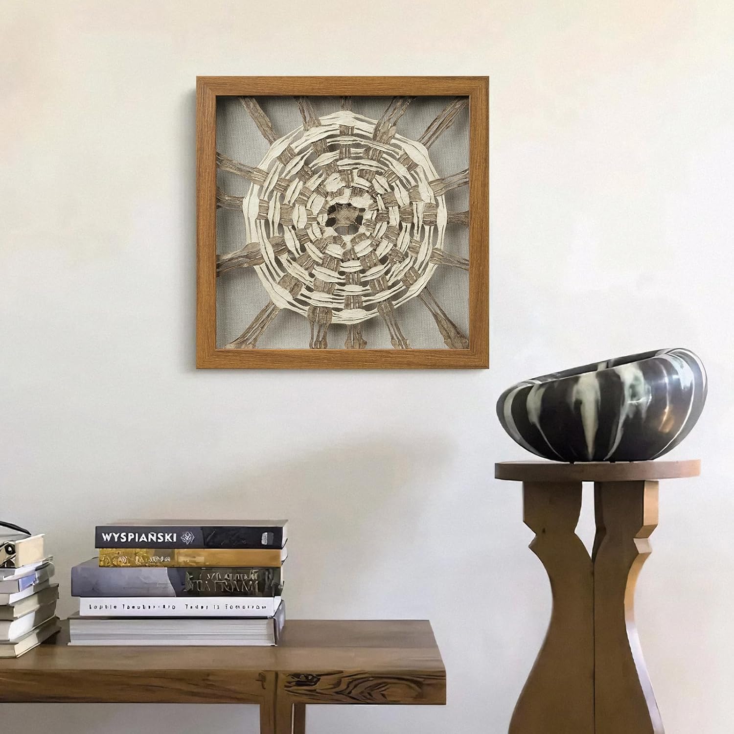 FOLKOR Framed Wall Art for Modern Home Office Apartment, 12" 3D Starburst Shadow Box Wall Accent for Rustic Farmhouse Living Room Bedroom Classroom, Natural Geometric Hanging Artwork Panel