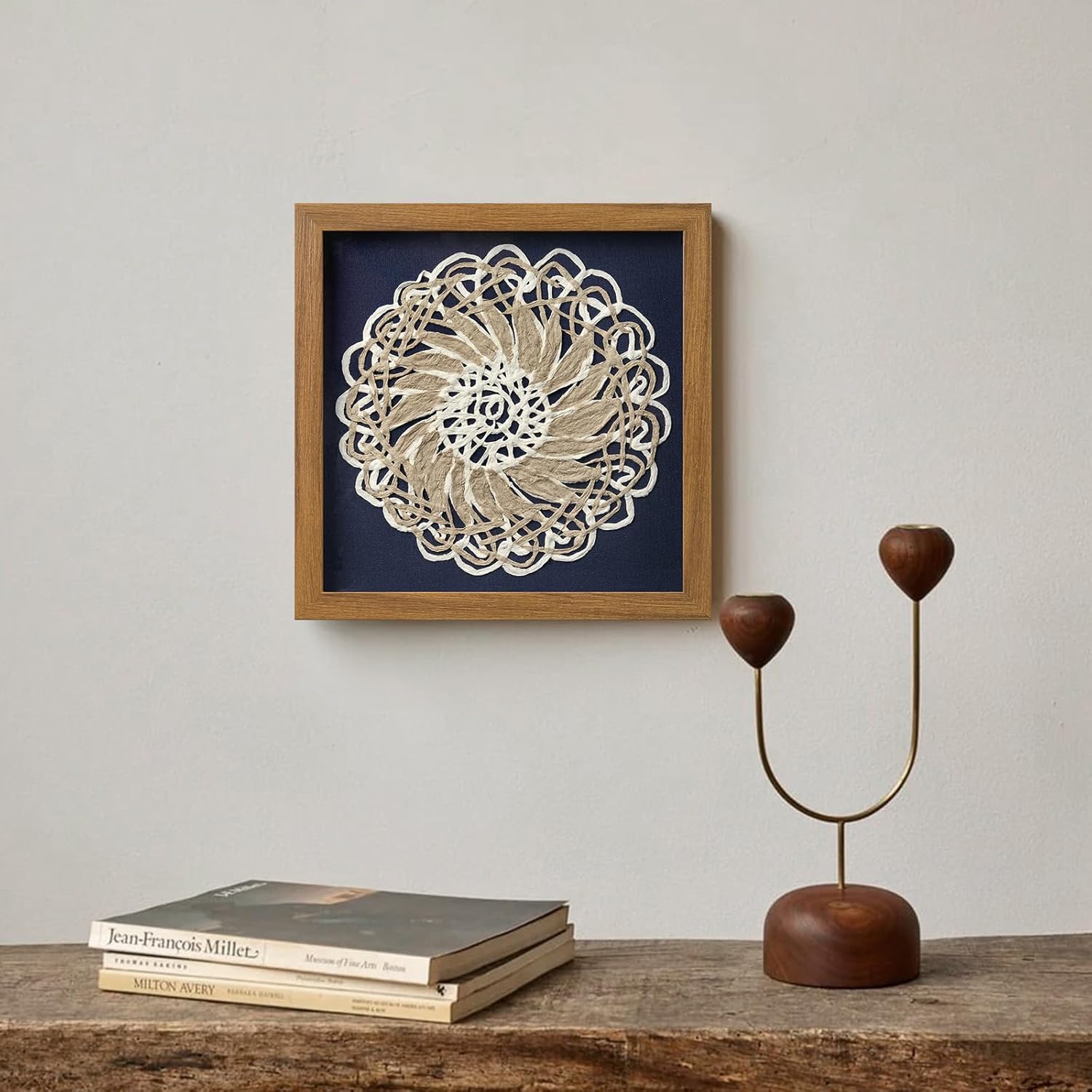 FOLKOR Framed Boho Wall Art for Living Room, 12" Natural Rice Paper Mandala Art Decor with Shadow Box, Bohemian Wall Hanging Panel for Bedroom Kitchen Shaby Chic Home Office Decoration