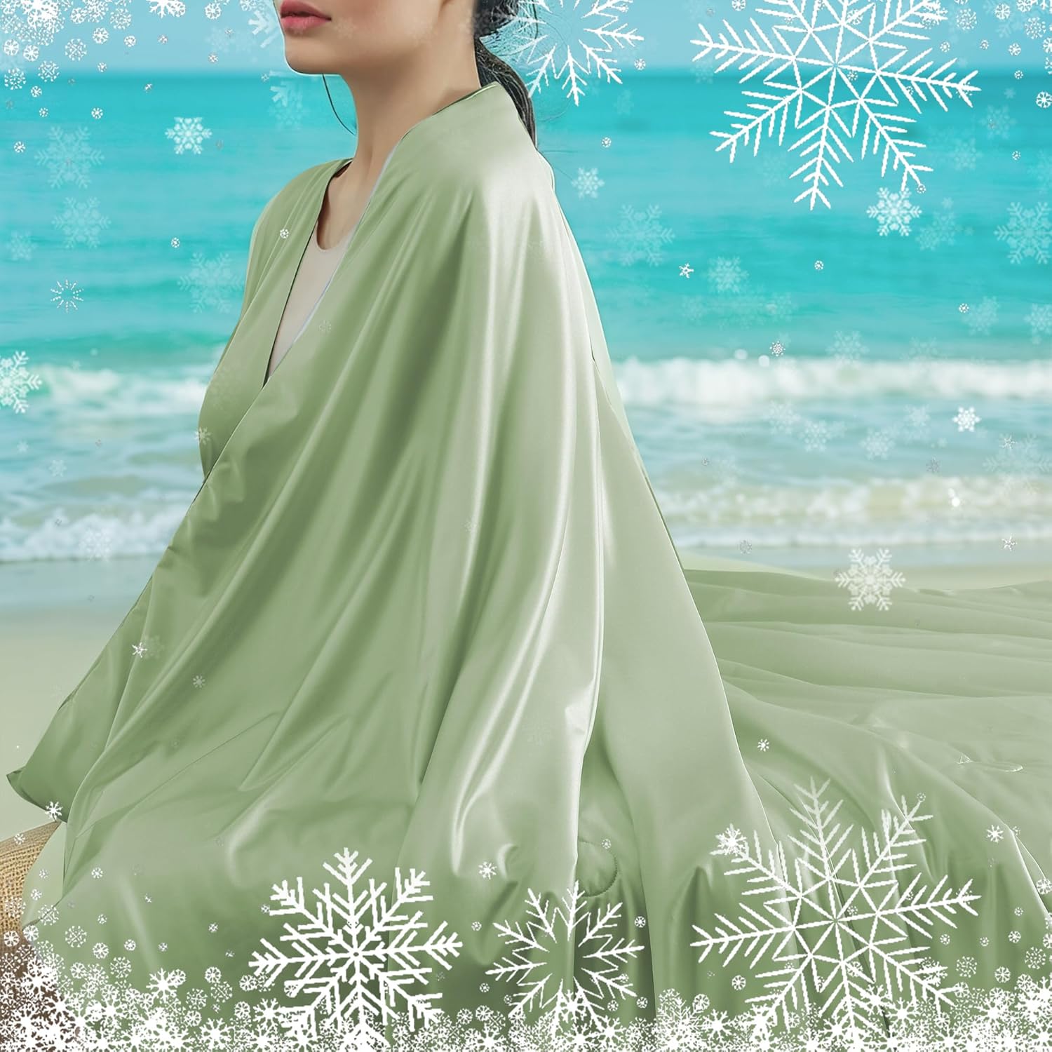 Cooling Blanket Throw Summer Comforter for Hot Sleepers, Silky-Soft & Cool Fiber, All-Season Comfort, Double-Sided Cold Blanket for Night Sweats, 53" x 79" Fits 2 on Couch, Sage Green