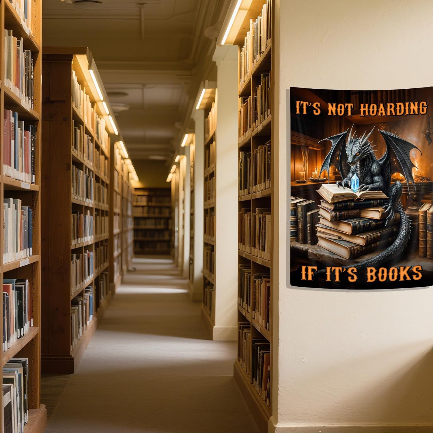 DYNH Black Book Dragon Art Tapestry,Vintage Medieval Dragon Wall Decor, It's Not Hoarding If It's Books,Wall Hanging for Book Lover Library Classroom Reading Nook Home Bedroom Living Room,40X60Inches