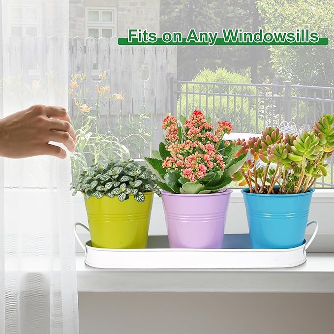 - Two Trays for Clean & Stylish Display: The sleek metal trays catch excess water and keep your surfaces tidy. Designed to complement modern or farmhouse decor, they make your kitchen or window ledge look organized and inviting