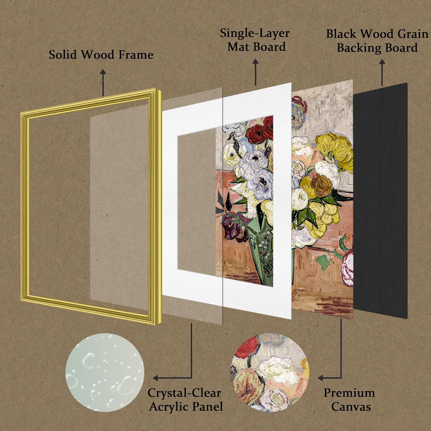 - Premium Quality: Printed on textured canvas with vivid colors, this framed wall art features a single mat board for depth and a clear acrylic cover. Finished with a black wood grain backboard and solid wood frame for durability and elegant luxury