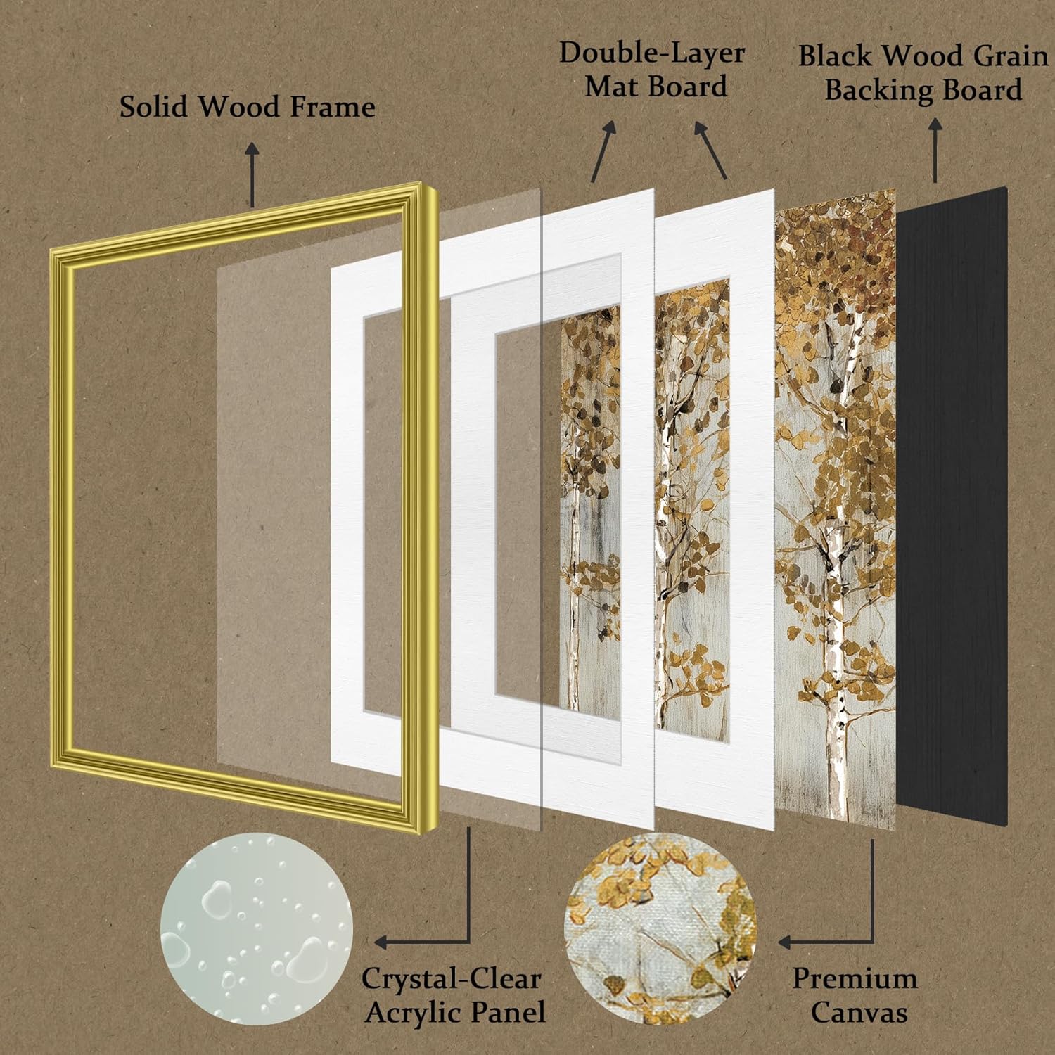 - Premium Quality: Printed on textured canvas with vivid colors, this framed wall art features a double mat board for depth and a clear acrylic cover. Finished with a black wood grain backboard and solid wood frame for durability and elegant luxury