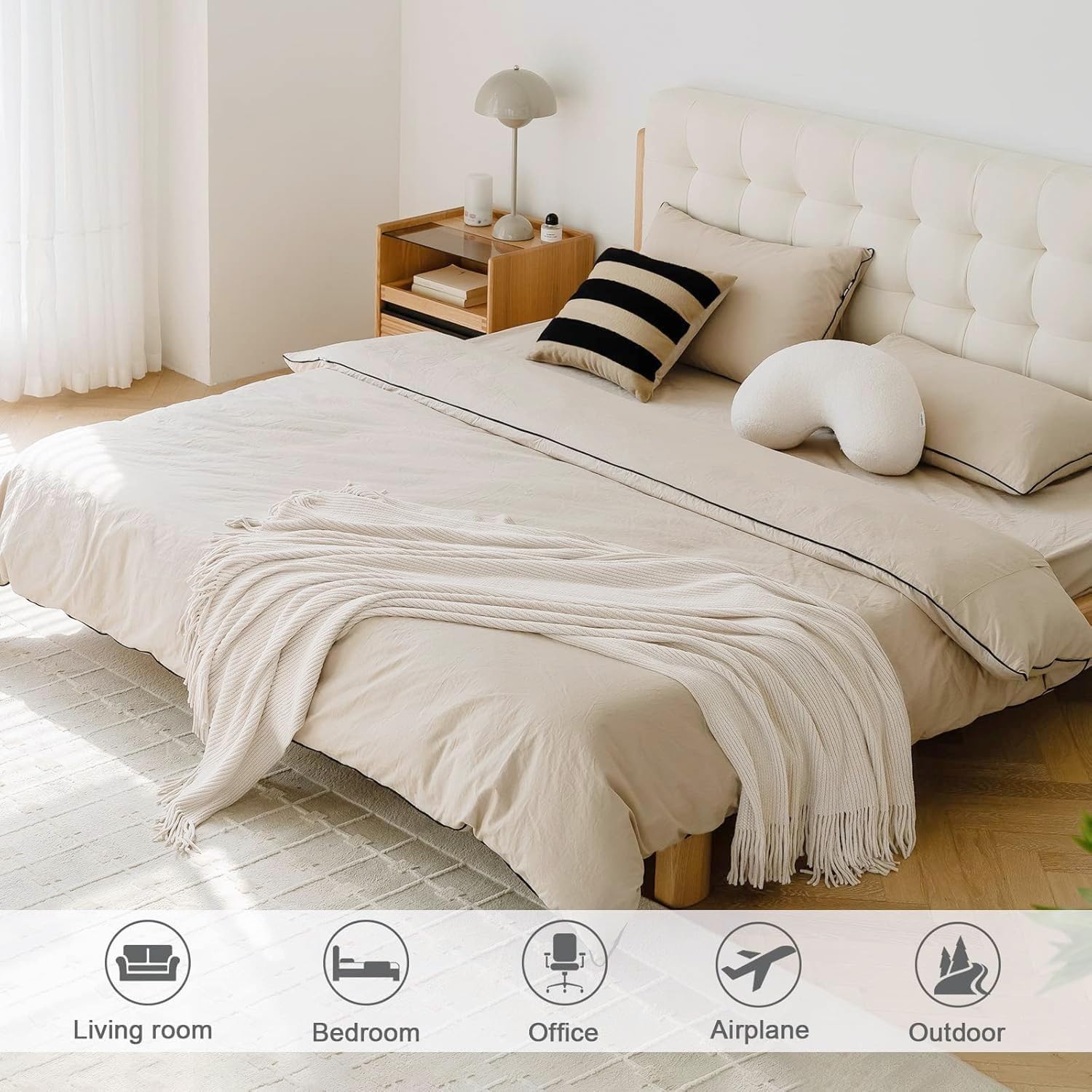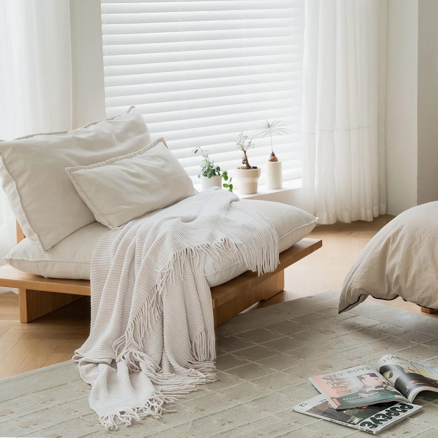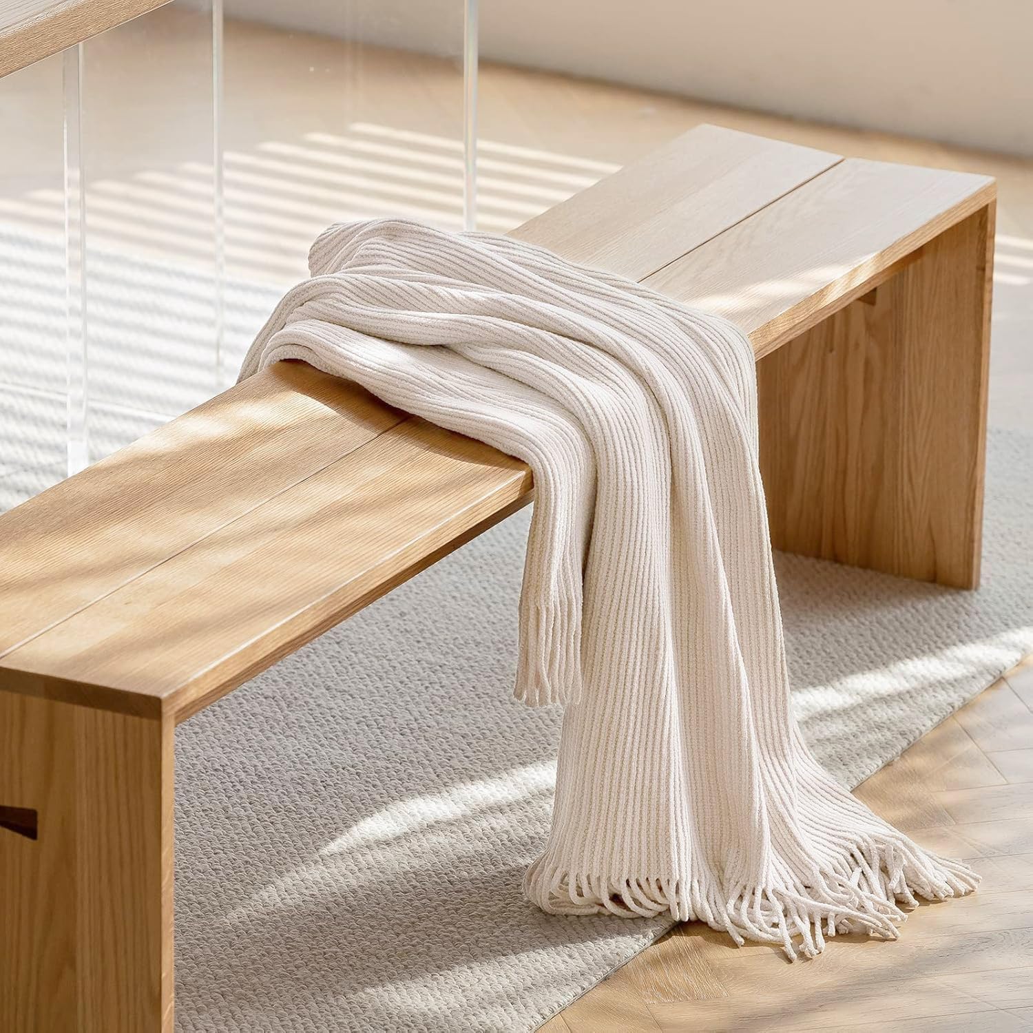 - 【FANTASTICAL DESGIN】LIFEIN throw blanket for couch nicely neutral solid knit design and well-arranged rustic farmhouse style fringes, this knitted throw blanket is in kinda cream/white, which is a pretty easy way to match your room to add an extra solid terracotta boho feature, don't you want have a neutral white throw blanket for your home decor?