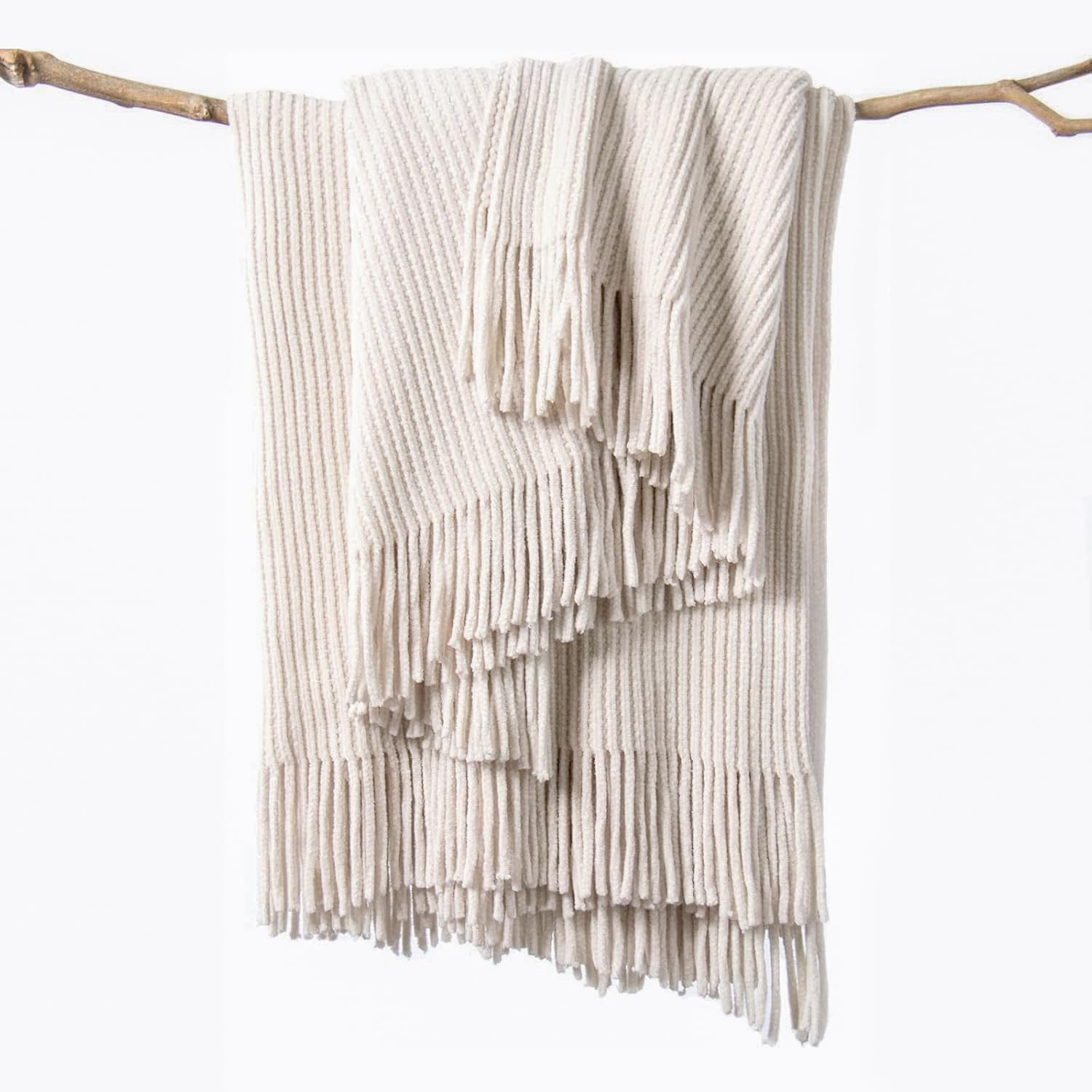 lifein Throw Blanket for Couch, Soft Boho Decor Bed Throw,Cozy Blue Chenille Knitted Small Farmhouse Lightweight Throw for Autumn(White,50 * 60")