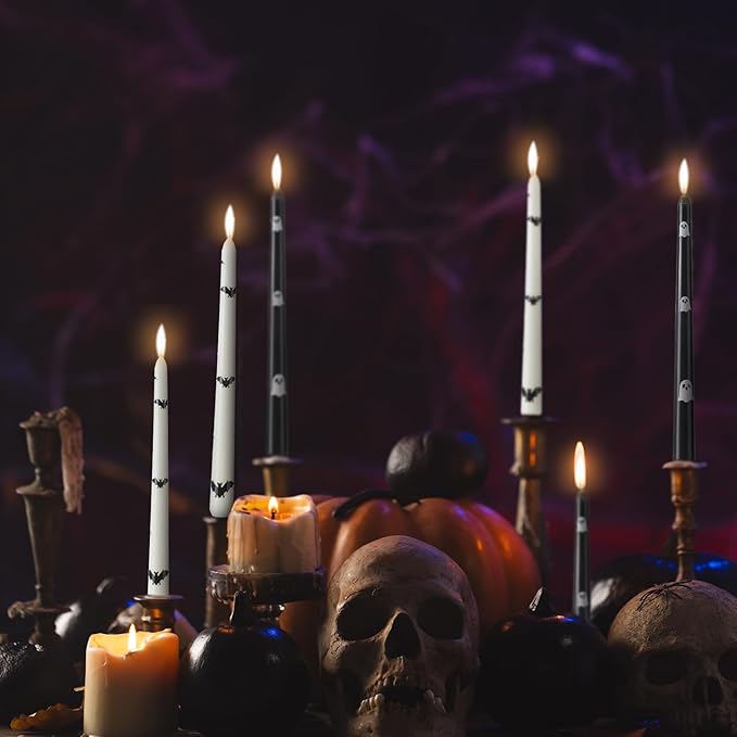 6 Pcs Taper Candles 10 Inch Candle Sticks for Bachelorette Bridal Wedding Party Baby Shower Table Cake Decor(Butterfly Bat and Ghost,10 Inch,Black and White)