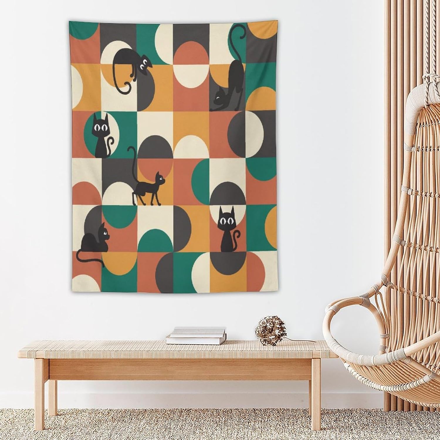 ICMOLYYENLO Boho Medieval Cat Tapestry, Abstract Atomic Starburst Geometric Aesthetic Art Wall Hanging For Bedroom Living Room Dormitory 30x40 Inches