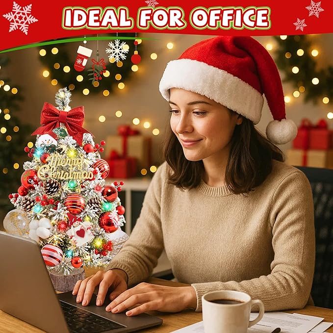 - 【Great Gift Choice - For Home, Office & Beyond】This charming snow-flocked mini tree makes a thoughtful gift for family, friends, coworkers, or teachers. Perfect for bedrooms, dorms, classrooms, and reception areas. If you have any issues, our customer support team is here to assist you anytime