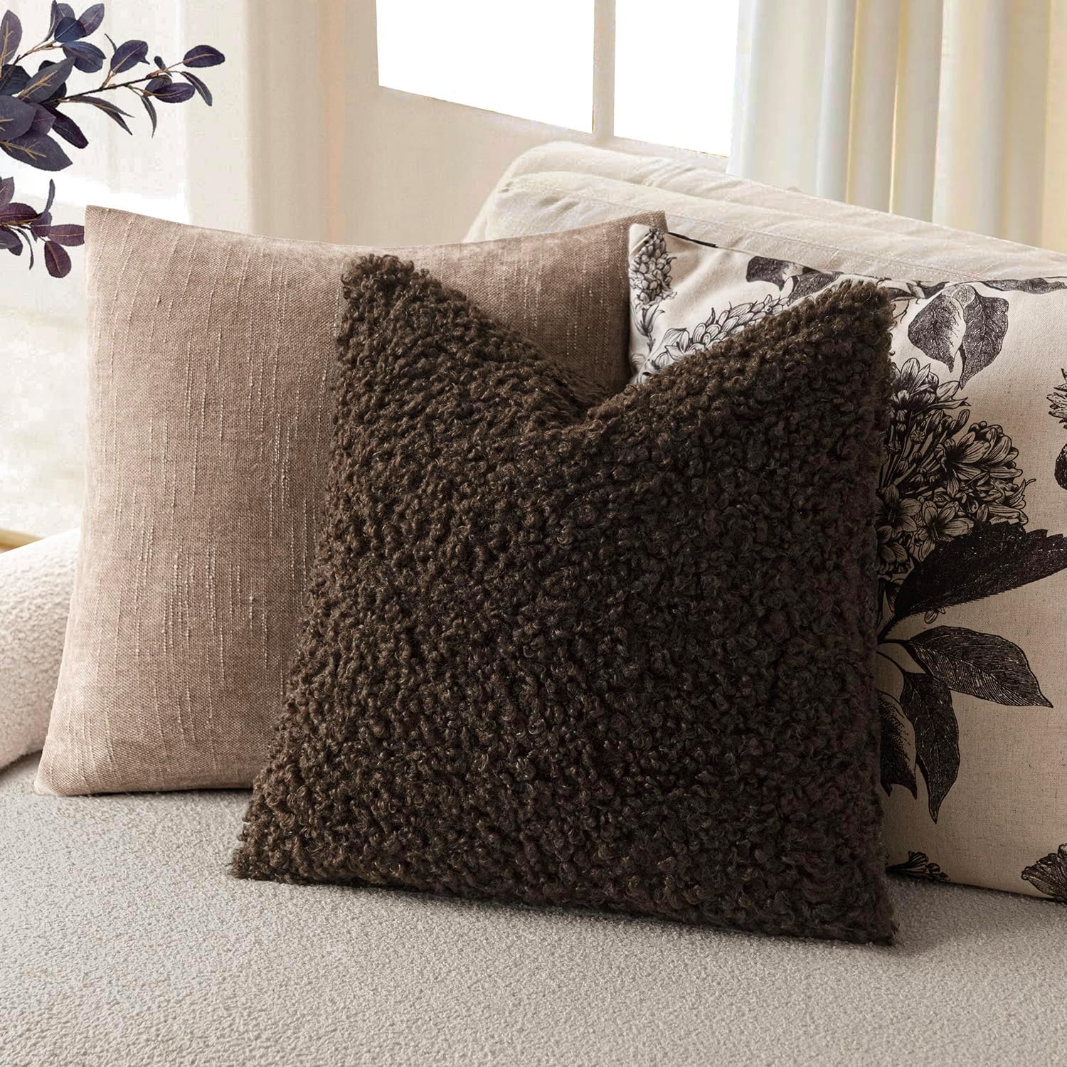 Foindtower 2 Pieces 20x20 Inch Dark Brown, Faux Fur Throw Pillow Cover Accent Sherpa Furry Pillow Covers Fuzzy Soft Pillowcases Cozy Sheepskin Decorative Fleece Cushion Case for Bed Couch Living Room