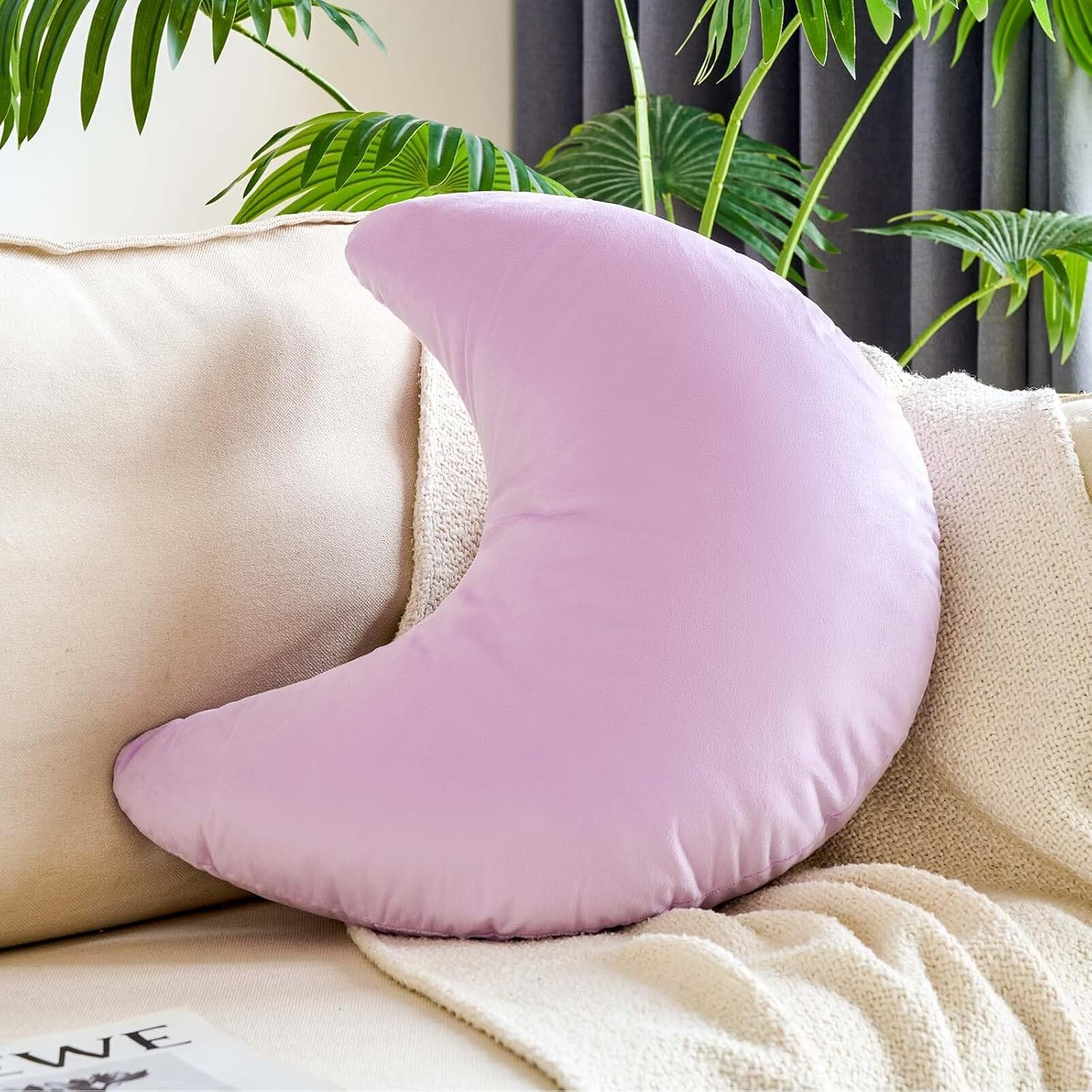 Lavender Moon Pillow, 14.9" Cute Soft Velvet Half Moon Shape Plush Decorative Throw Pillows Cushions Room Decor for Couch Bedroom Living Room