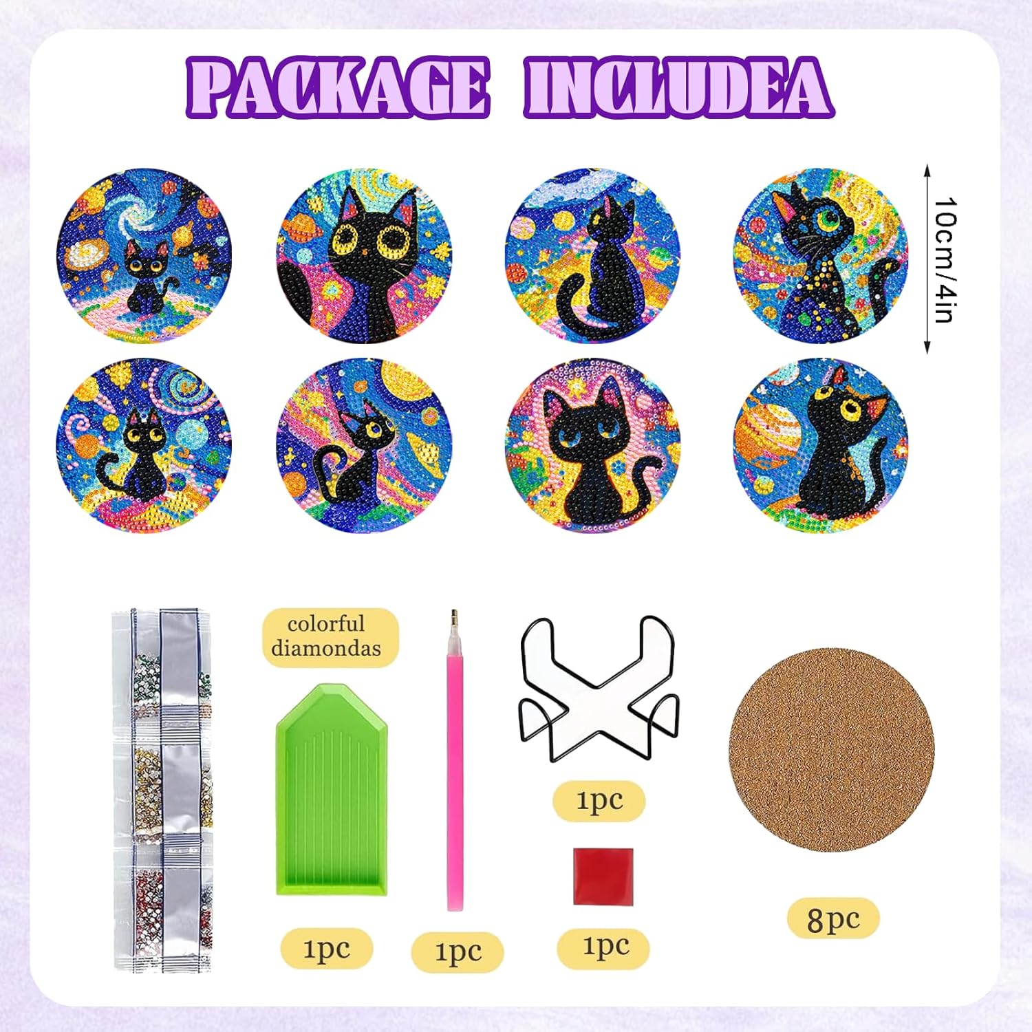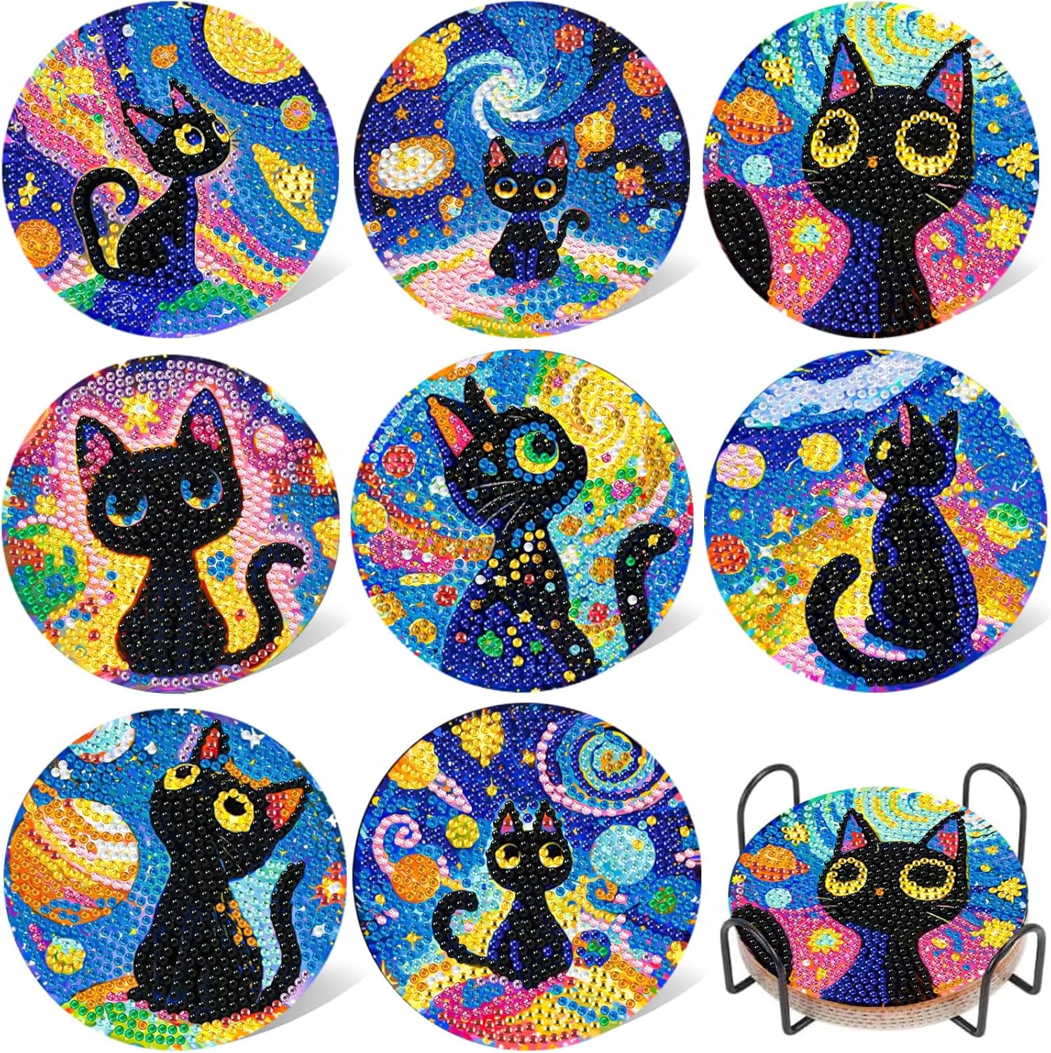 - Black Cat Diamond Art Kits for Adults: For each coasters diamond art kits we'll provide 30% diamond more than need but this kit does cork pads, this small diamond painting kits for adults includes diamond painting accessories 8 pcs diamond painting coasters kits, diamond dots arts, diamond painting set pens, red glue clay and plastic trays